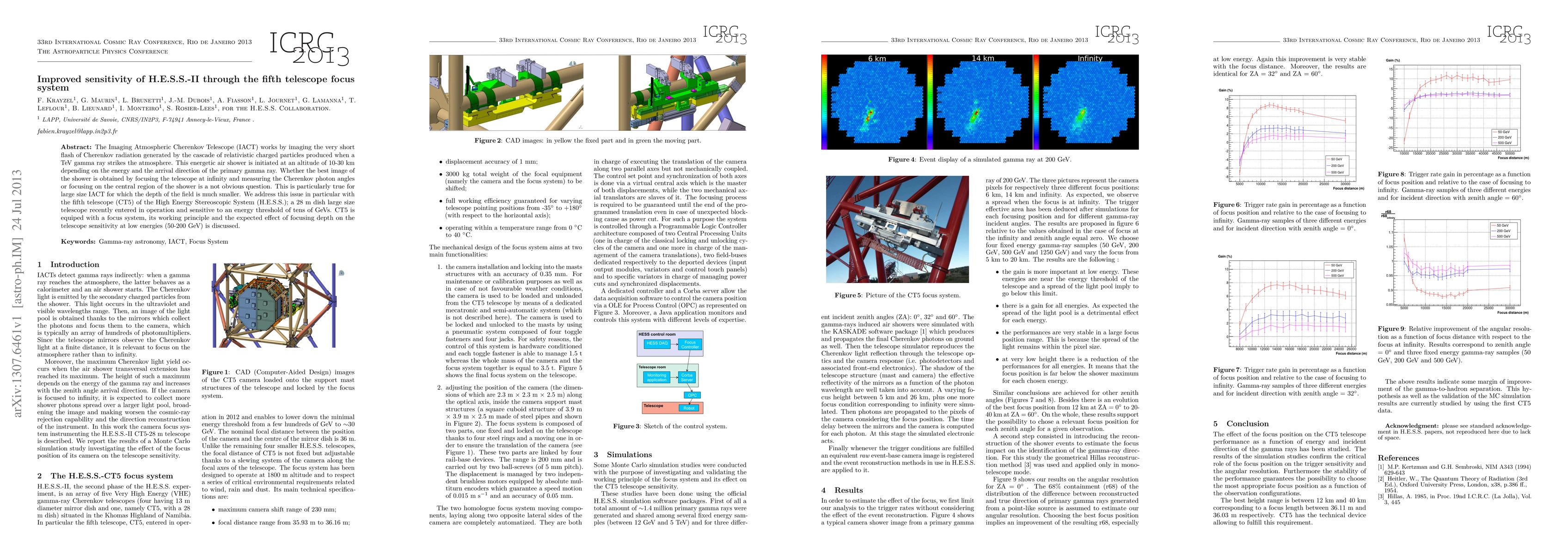 The H.E.S.S.-II fifth telescope (CT5) employs a new focus system to improve sensitivity by optimizing the focus depth for capturing Cherenkov radiation from TeV gamma rays, enhancing detection efficiency at low energies (50-200 GeV). The study evaluates the impact of this focus adjustment on the telescope's performance and overall sensitivity.
