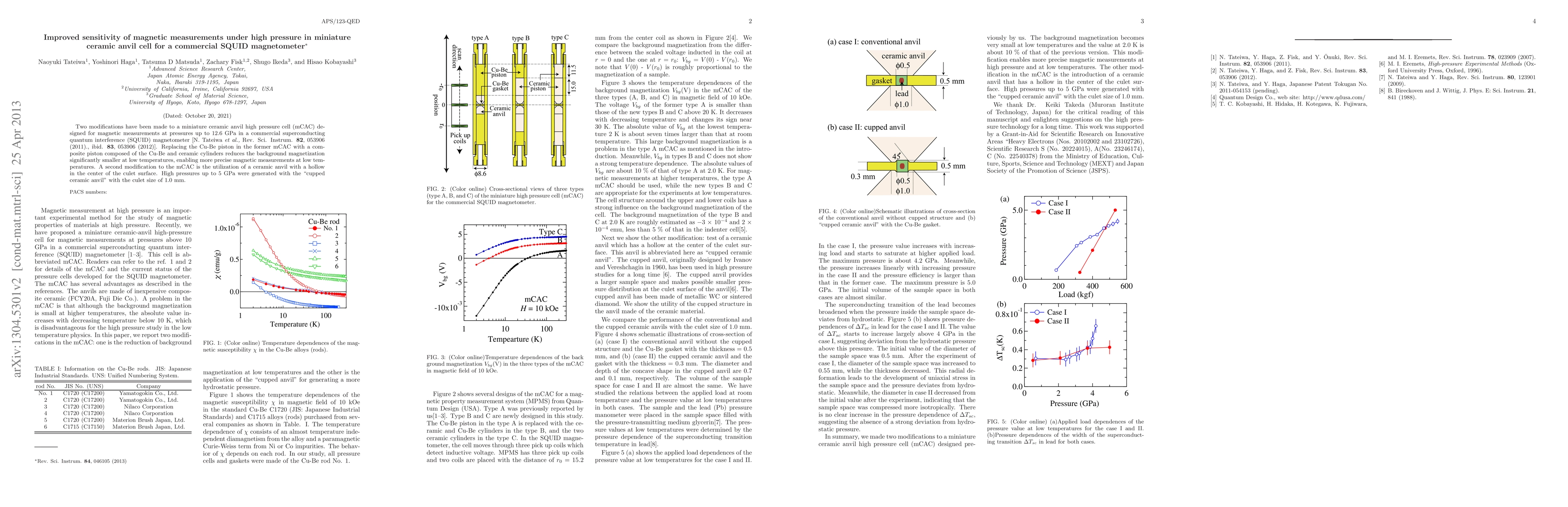 This paper details two enhancements to a miniature ceramic anvil cell (mCAC) for high-pressure magnetic measurements using a commercial SQUID magnetometer, including a composite piston and a cupped ceramic anvil design, which significantly improve measurement sensitivity and pressure generation.