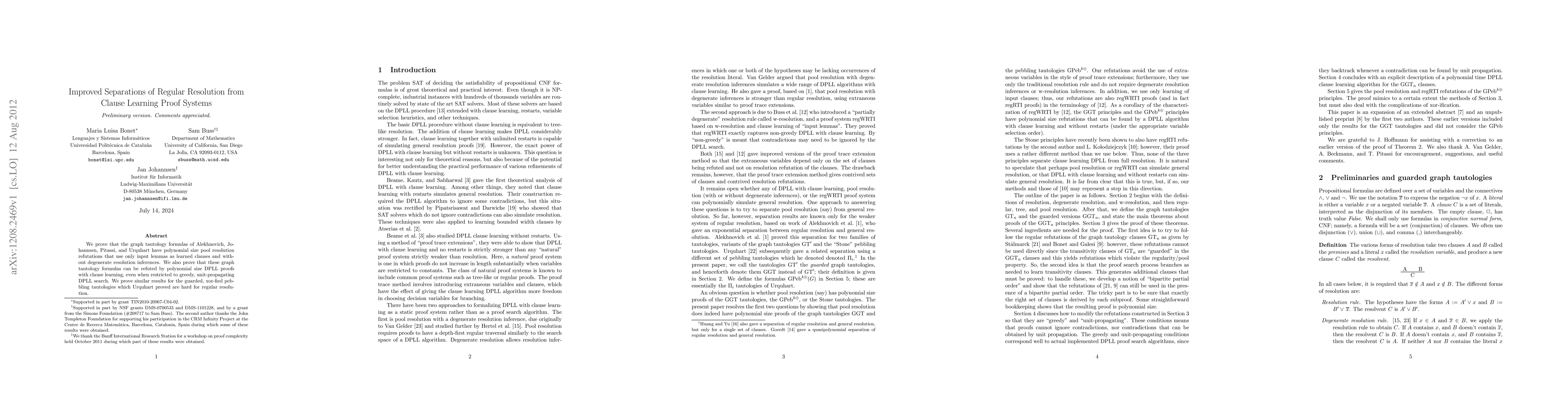 This paper demonstrates that graph tautology formulas can be refuted using polynomial size resolution proofs that rely solely on input lemmas and polynomial size DPLL proofs with clause learning, even under restricted search conditions. It also extends similar results to guarded, xor-fied pebbling tautologies previously shown to be hard for regular resolution.