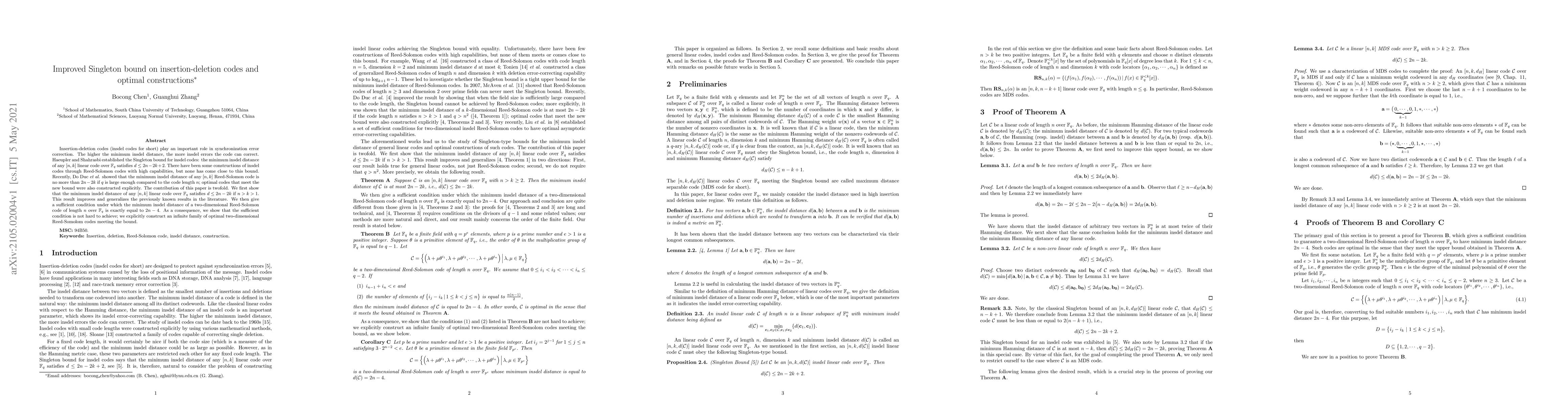 This paper improves the Singleton bound for insertion-deletion codes, showing that the minimum insdel distance of any $[n,k]$ linear code over $\mathbb{F}_q$ satisfies $d\leq2n-2k$ for $n>k>1$. It also constructs an infinite family of optimal two-dimensional Reed-Solomon codes meeting this new bound.