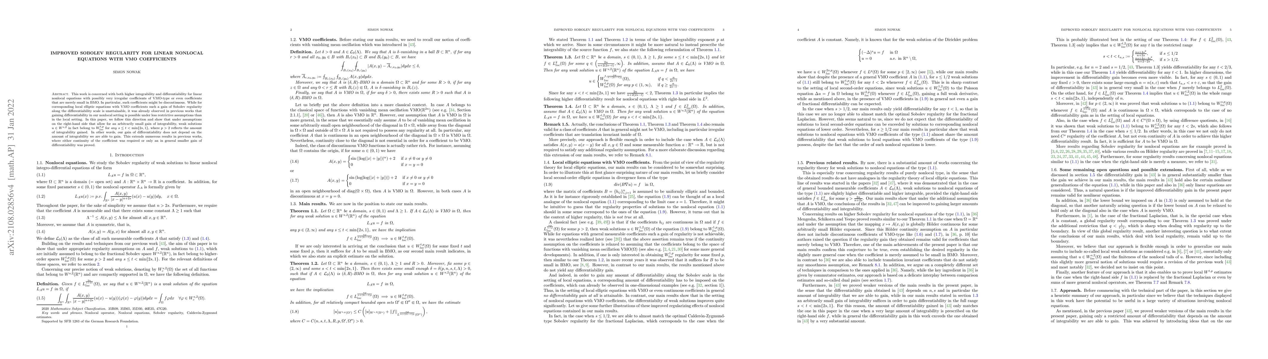 This paper demonstrates improved Sobolev regularity for linear nonlocal equations with VMO coefficients, showing that weak solutions can achieve higher differentiability under less restrictive conditions than local elliptic equations. The results reveal that weak solutions in $W^{s,2}$ belong to $W^{t,p}_{loc}$ for any $s \leq t < \min\{2s,1\}$, where $p>2$ reflects the integrability gain, independent of the differentiability level.
