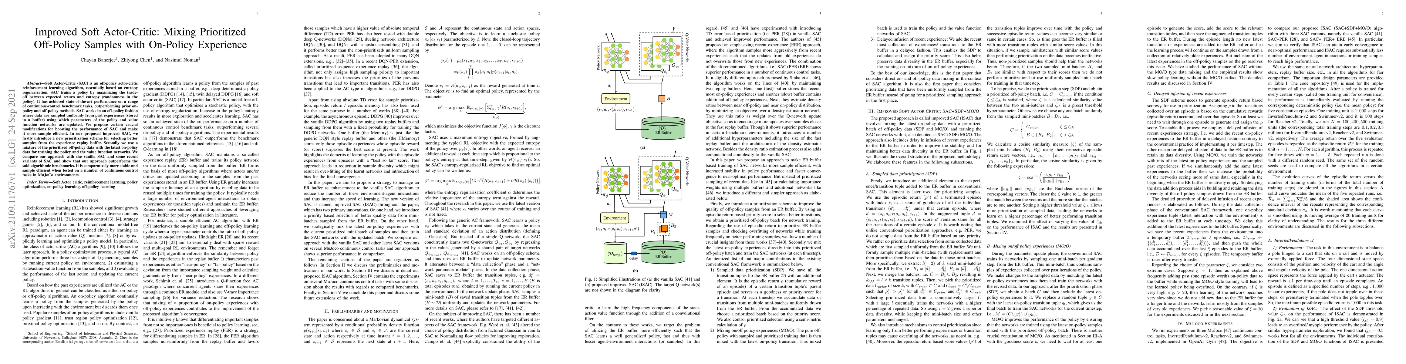 This paper proposes an improved version of the Soft Actor-Critic (SAC) algorithm by integrating a prioritization scheme for off-policy samples and mixing these with on-policy data, achieving better performance, stability, and sample efficiency compared to the original SAC and other variants.