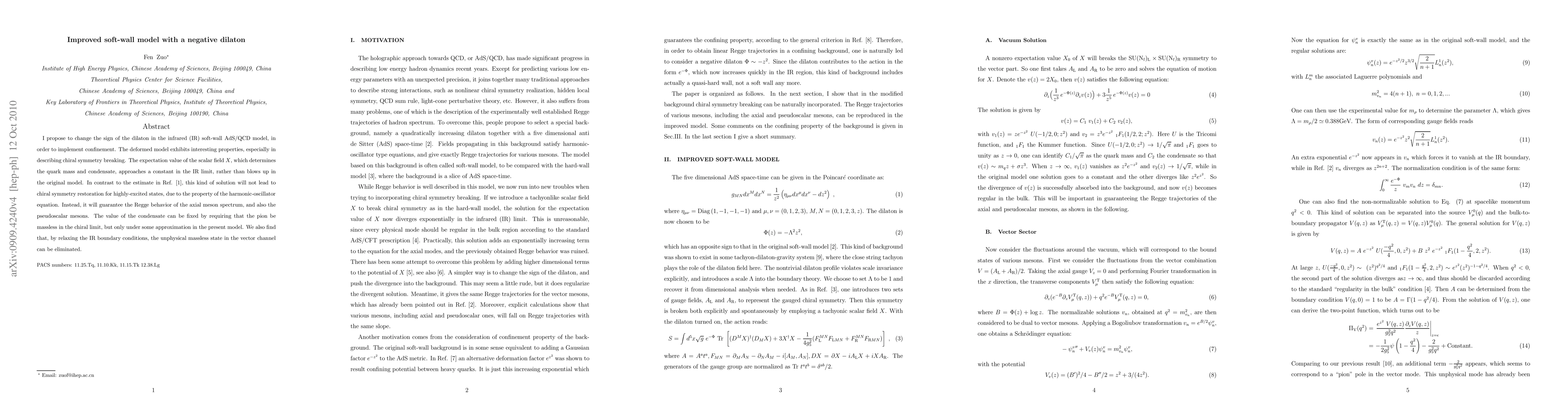 I propose to change the sign of the dilaton in the infrared~(IR) soft-wall AdS/QCD model, in order to implement confinement. The deformed model exhibits interesting properties, especially in describing chiral symmetry breaking. The expectation value of the scalar field $X$, which determines the quark mass and condensate, approaches a constant in the IR limit, rather than blows up in the original model. In contrast to the estimate in Ref. \cite{Shifman:2007xn}, this kind of solution will not lead to chiral symmetry restoration for highly-excited states, due to the property of the harmonic-oscillator equation. Instead, it will guarantee the Regge behavior of the axial meson spectrum, and also the pseudoscalar mesons. The value of the condensate can be fixed by requiring that the pion be massless in the chiral limit, but only under some approximation in the present model. We also find that, by relaxing the IR boundary conditions, the unphysical massless state in the vector channel can be eliminated.