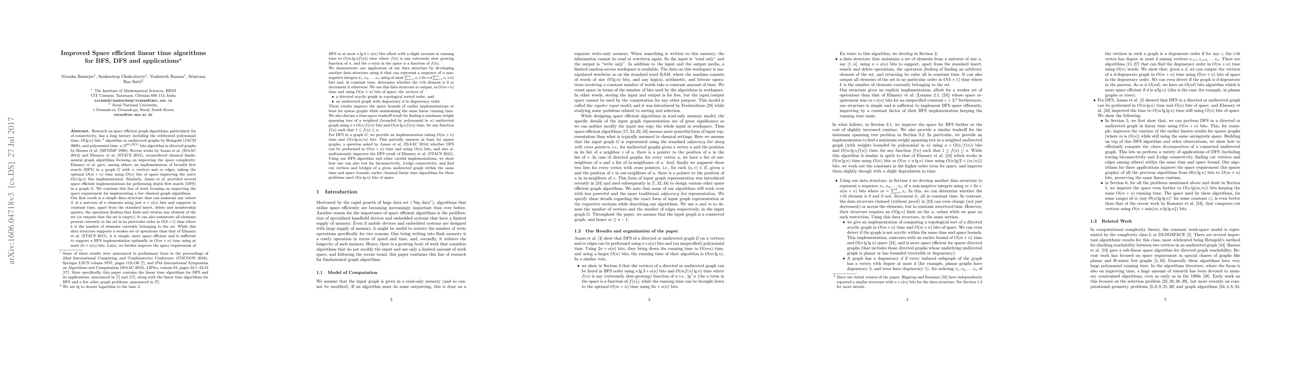 Researchers developed space-efficient algorithms for Breadth-First Search (BFS), Depth-First Search (DFS) and applications, reducing memory usage from Omega(nlg n) bits to near-linear time and space complexity.