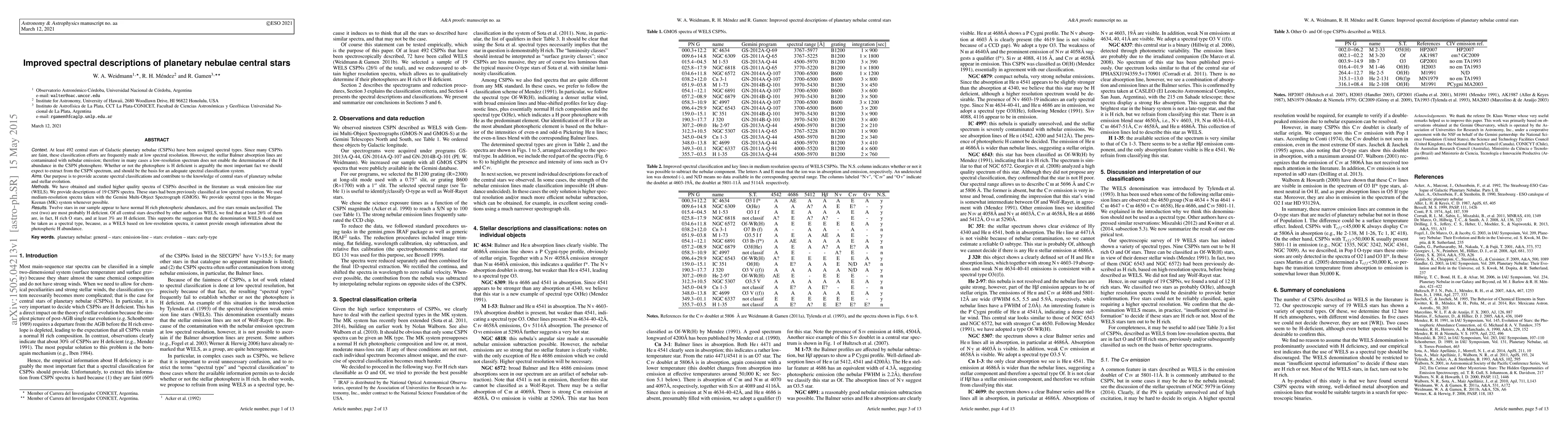 This paper provides improved spectral classifications for central stars of planetary nebulae (CSPNs) using medium-resolution spectra, revealing that many previously classified as weak emission-line stars (WELS) are actually H-rich O stars or H-deficient, challenging the WELS classification.