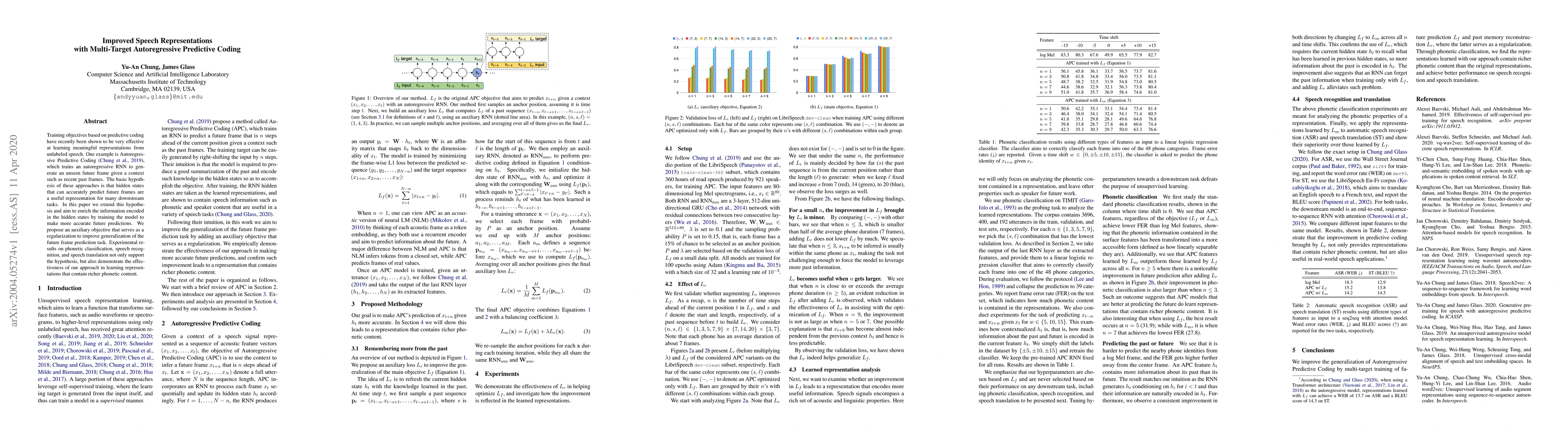 This paper proposes an improved version of Autoregressive Predictive Coding by introducing an auxiliary objective to enhance future frame predictions, aiming to enrich the hidden states' information. Experimental results show that the approach effectively learns richer representations, improving performance in phonetic classification, speech recognition, and speech translation.