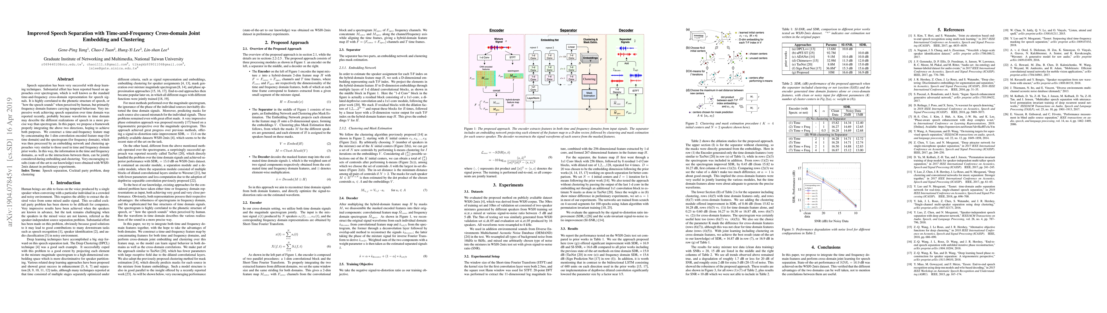 Speech separation has been very successful with deep learning techniques. Substantial effort has been reported based on approaches over spectrogram, which is well known as the standard time-and-frequency cross-domain representation for speech signals. It is highly correlated to the phonetic structure of speech, or "how the speech sounds" when perceived by human, but primarily frequency domain features carrying temporal behaviour. Very impressive work achieving speech separation over time domain was reported recently, probably because waveforms in time domain may describe the different realizations of speech in a more precise way than spectrogram. In this paper, we propose a framework properly integrating the above two directions, hoping to achieve both purposes. We construct a time-and-frequency feature map by concatenating the 1-dim convolution encoded feature map (for time domain) and the spectrogram (for frequency domain), which was then processed by an embedding network and clustering approaches very similar to those used in time and frequency domain prior works. In this way, the information in the time and frequency domains, as well as the interactions between them, can be jointly considered during embedding and clustering. Very encouraging results (state-of-the-art to our knowledge) were obtained with WSJ0-2mix dataset in preliminary experiments.