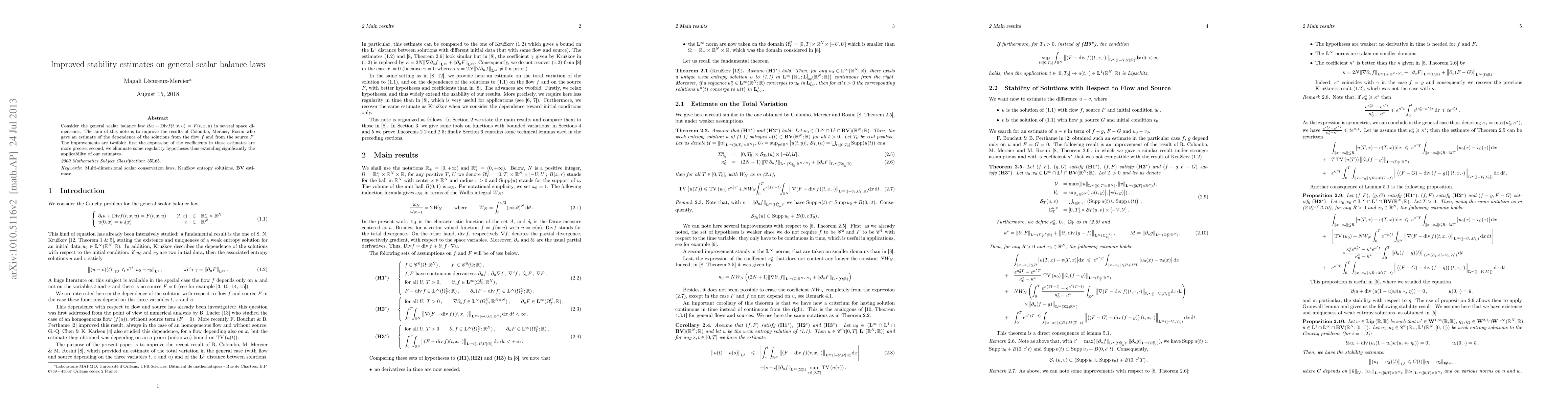 Researchers improved stability estimates for general scalar balance laws, refining precision and relaxing regularity hypotheses to expand applicability.