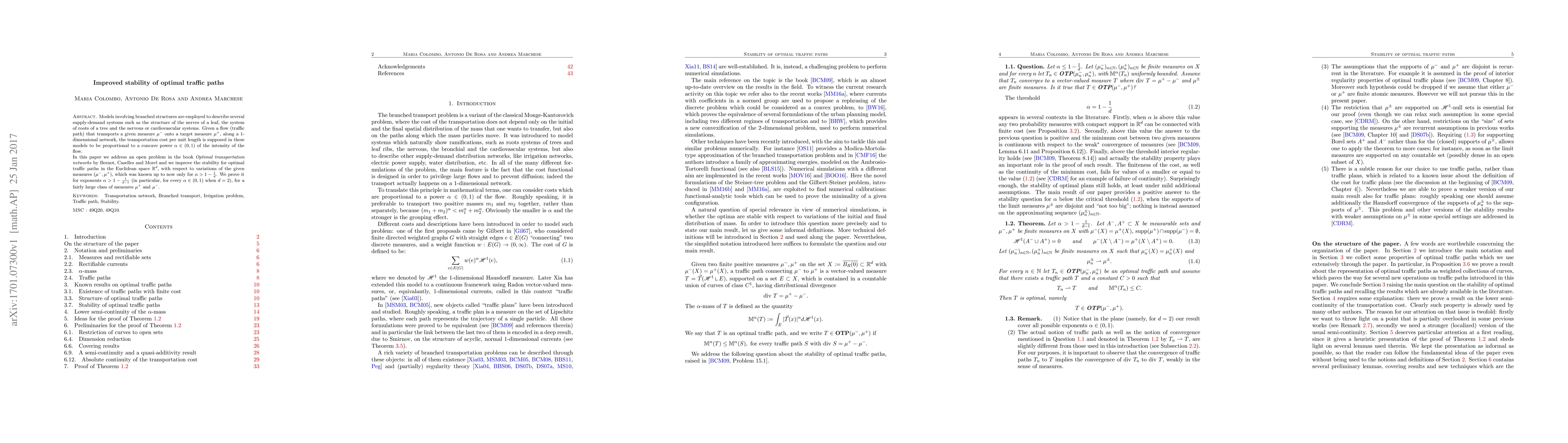 Researchers improve the stability of optimal traffic paths in Euclidean space for a broader range of exponents than previously known, providing a more stable solution to transportation problems.