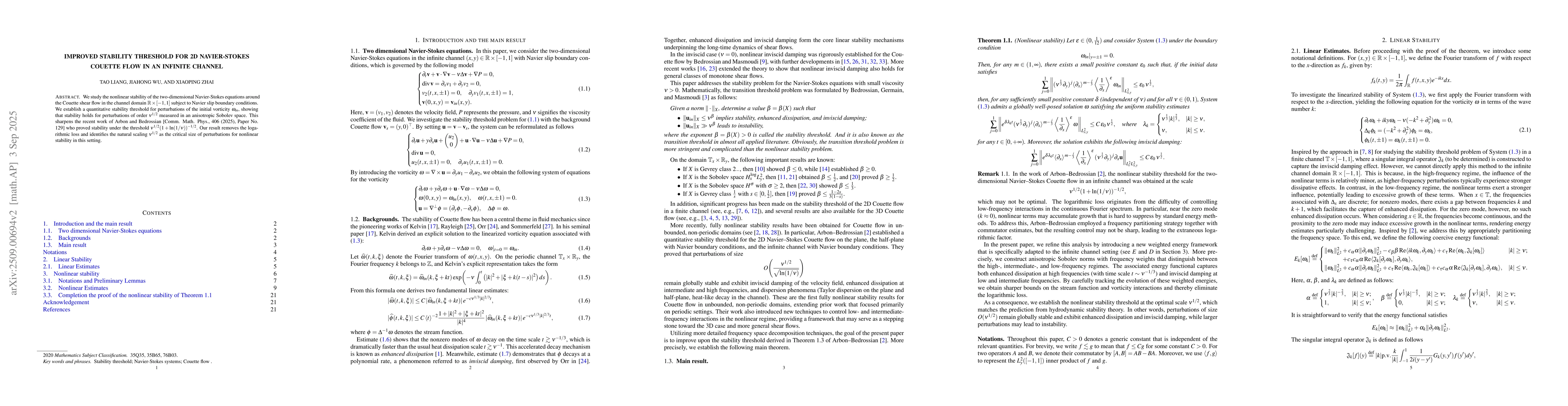 We study the nonlinear stability of the two-dimensional Navier-Stokes equations around the Couette shear flow in the channel domain $\mathbb{R}\times[-1,1]$ subject to Navier slip boundary conditions. We establish a quantitative stability threshold for perturbations of the initial vorticity $\omega_{in}$, showing that stability holds for perturbations of order $\nu^{1/2}$ measured in an anisotropic Sobolev space. This sharpens the recent work of Arbon and Bedrossian [Comm. Math. Phys., 406 (2025), Paper No. 129] who proved stability under the threshold $\nu^{1/2}(1+\ln(1/\nu))^{-1/2}$. Our result removes the logarithmic loss and identifies the natural scaling $\nu^{1/2}$ as the critical size of perturbations for nonlinear stability in this setting.