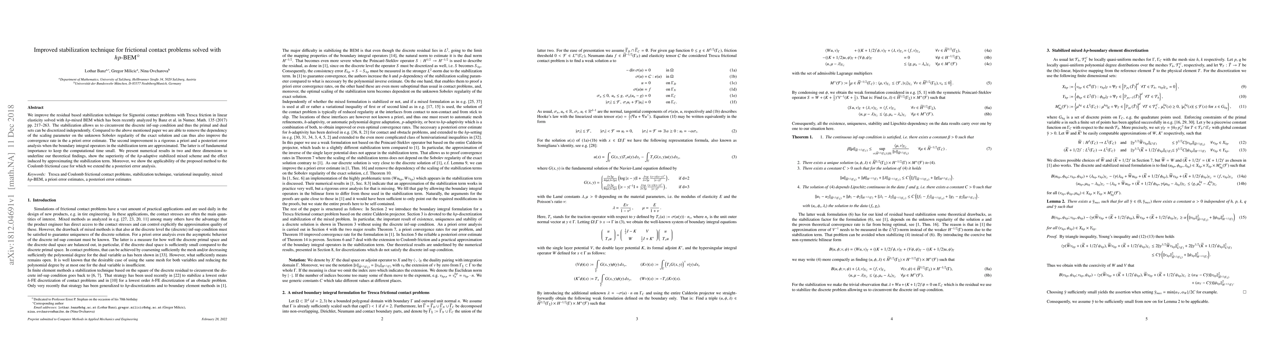 Researchers improve stabilization technique for frictional contact problems solved with hp-BEM, enabling independent discretization of primal and dual sets and improved convergence rate.