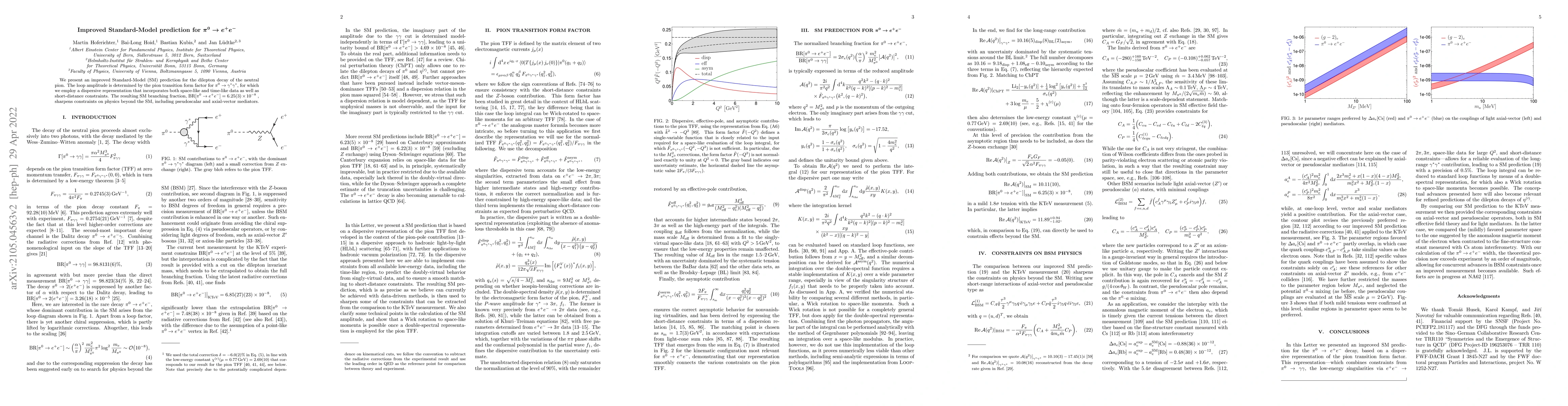 We present an improved Standard-Model (SM) prediction for the dilepton decay of the neutral pion. The loop amplitude is determined by the pion transition form factor for $\pi^0\to\gamma^*\gamma^*$, for which we employ a dispersive representation that incorporates both space-like and time-like data as well as short-distance constraints. The resulting SM branching fraction, $\text{BR}[\pi^0\to e^+e^-]=6.25(3)\times 10^{-8}$ , sharpens constraints on physics beyond the SM, including pseudoscalar and axial-vector mediators.