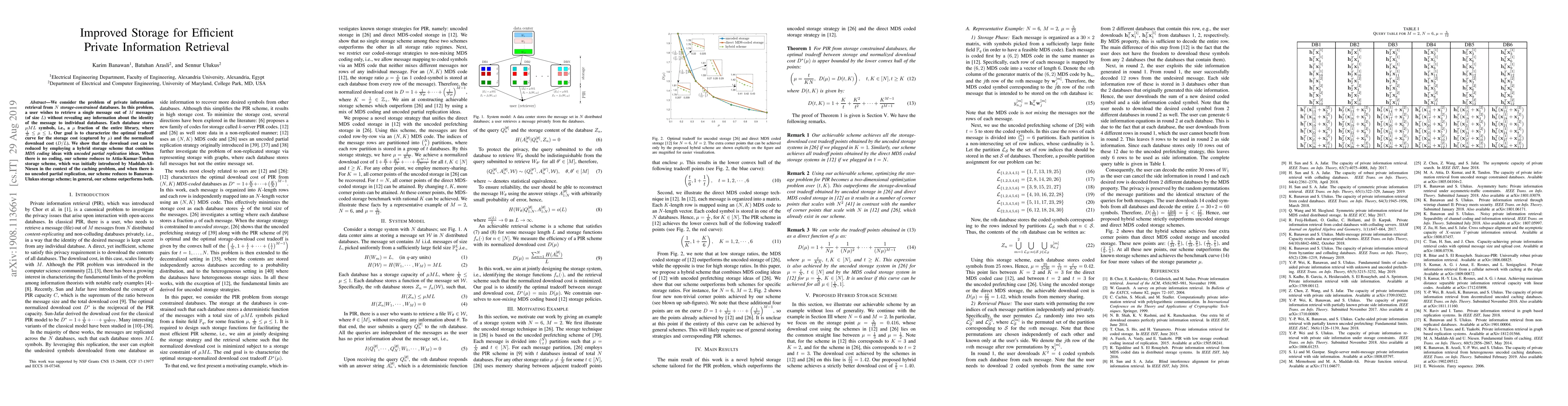This paper proposes an improved storage scheme for efficient private information retrieval from multiple databases, aiming to minimize both storage and download costs. The hybrid scheme combines MDS coding with uncoded partial replication, achieving better performance than existing methods.