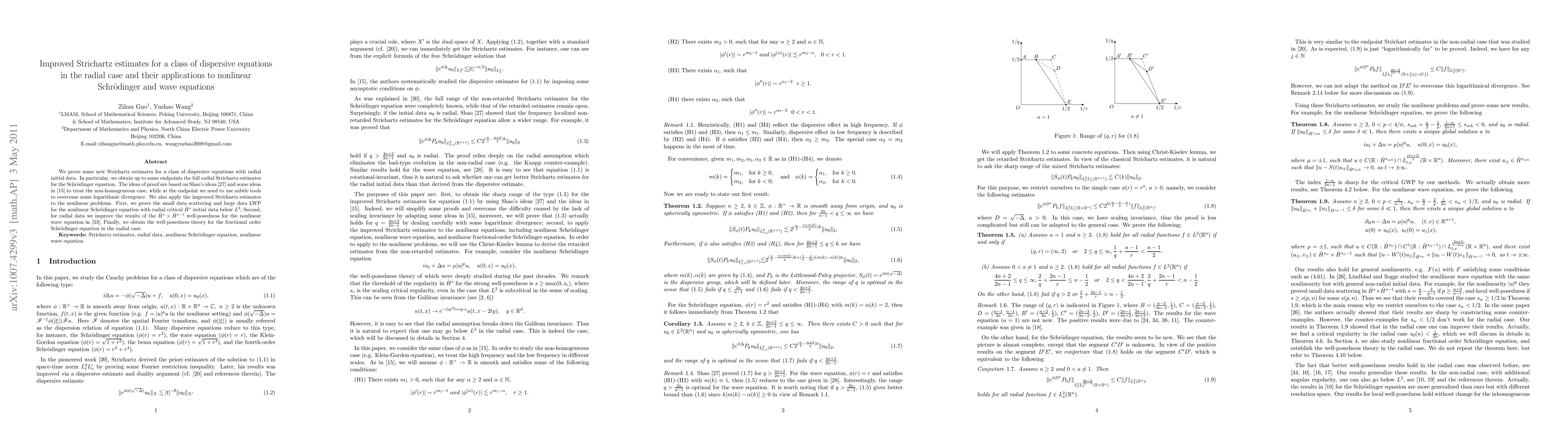 This paper establishes new Strichartz estimates for dispersive equations with radial initial data, applying Shao's and other techniques to handle non-homogeneous cases. These improved estimates are used to prove scattering and well-posedness results for nonlinear Schrödinger and wave equations with radial initial conditions.