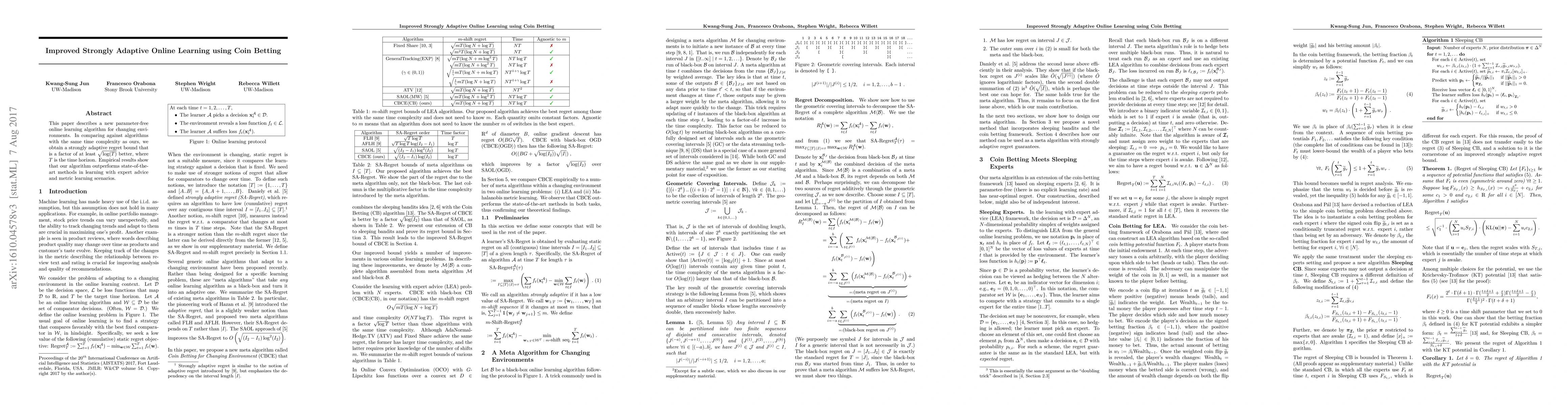 This paper introduces a parameter-free online learning algorithm achieving a significantly better strongly adaptive regret bound by a factor of $\sqrt{\log(T)}$ compared to existing algorithms, and empirical results demonstrate its superior performance in expert advice and metric learning scenarios.