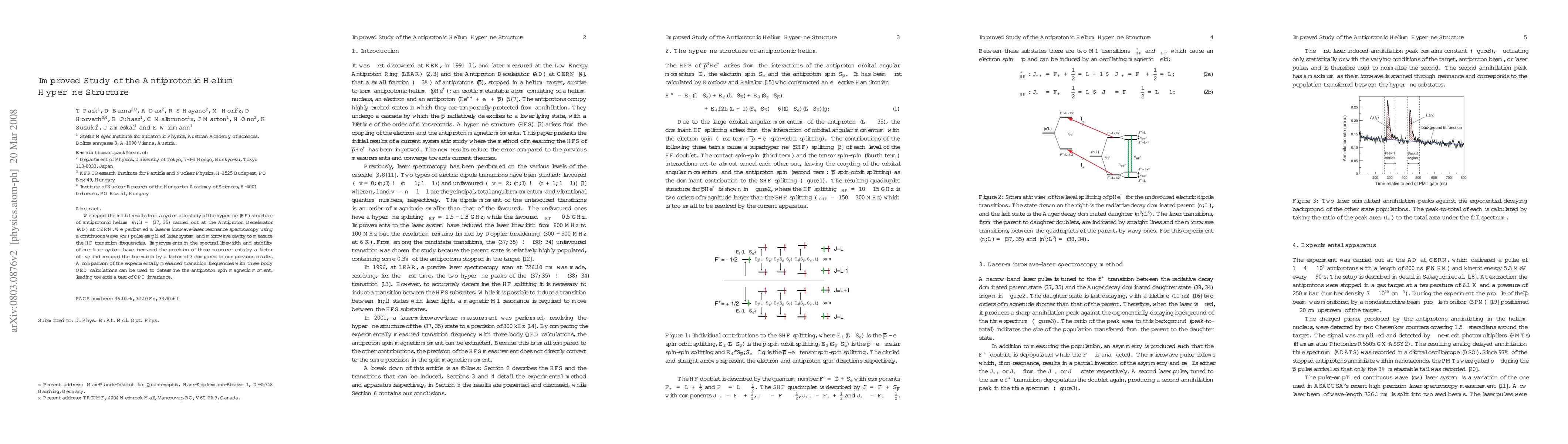 This study reports enhanced precision measurements of the hyperfine structure of antiprotonic helium using laser-microwave-laser spectroscopy at CERN, improving spectral linewidth and stability. The results provide a basis for determining the antiproton spin magnetic moment and testing CPT invariance.