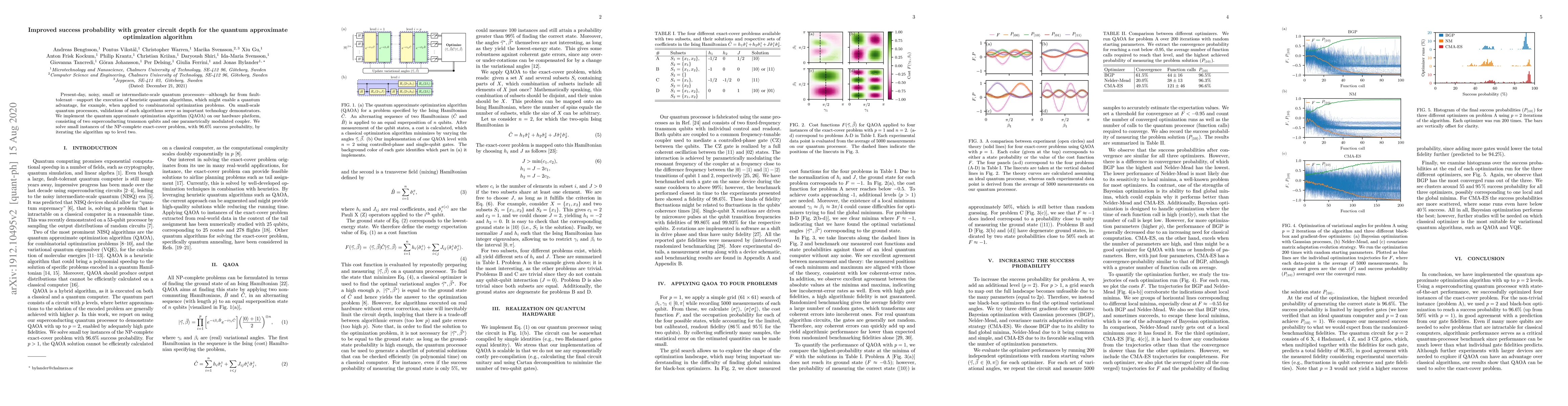 This paper demonstrates the implementation of the quantum approximate optimization algorithm (QAOA) on a small-scale quantum processor, achieving a 96.6% success probability for solving NP-complete exact-cover problems by increasing the algorithm's circuit depth to level two. The results highlight the potential of heuristic quantum algorithms on current noisy quantum processors.