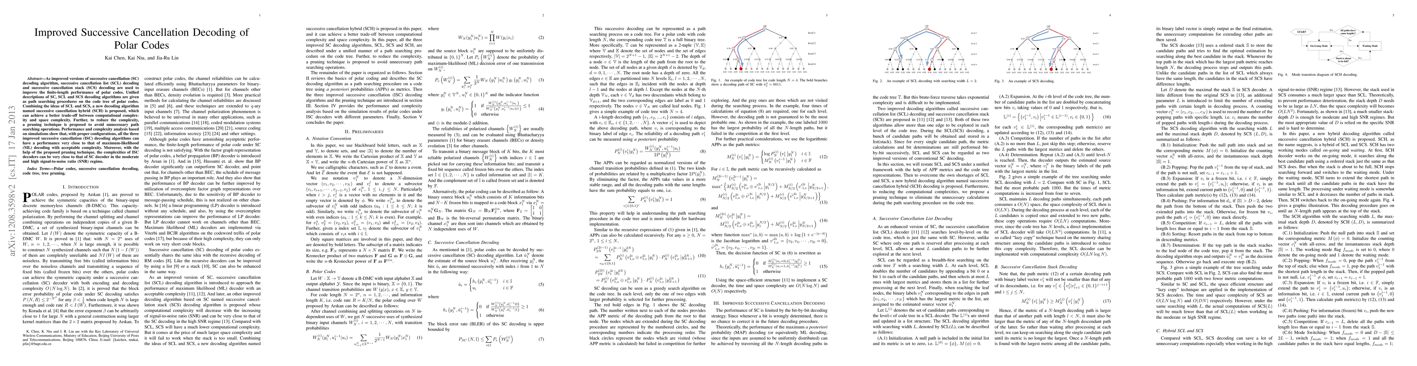 This paper proposes three improved successive cancellation decoding algorithms for polar codes—SCL, SCS, and a new hybrid SCH algorithm—to enhance finite-length performance. A pruning technique reduces computational complexity while maintaining performance close to maximum-likelihood decoding.