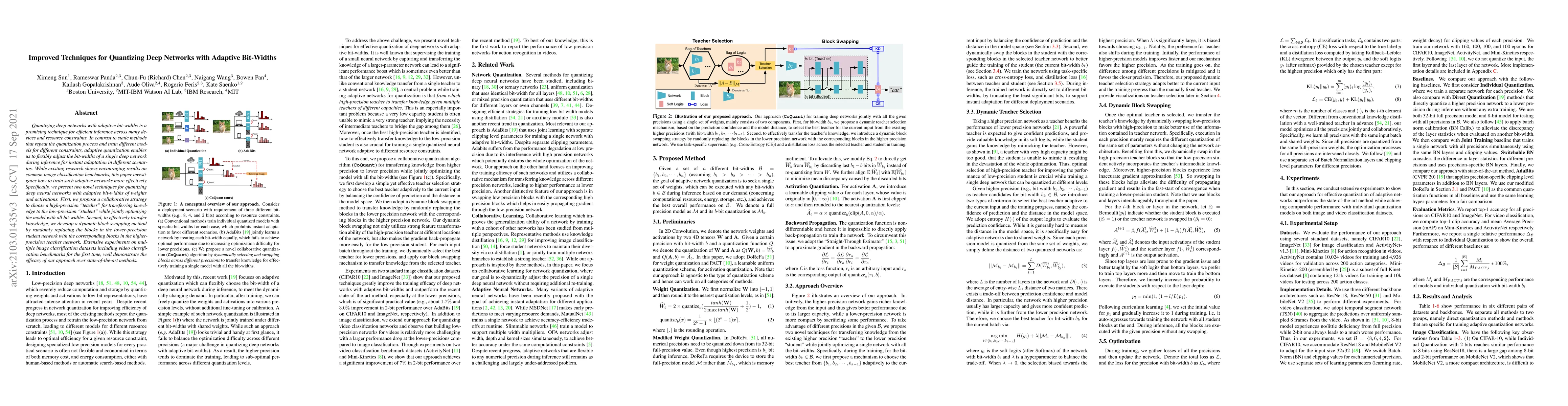 This paper proposes two novel techniques for quantizing deep neural networks with adaptive bit-widths, enhancing efficient inference across various devices. The techniques include a collaborative strategy for knowledge transfer and a dynamic block-swapping method, both aimed at optimizing adaptive quantization during training.