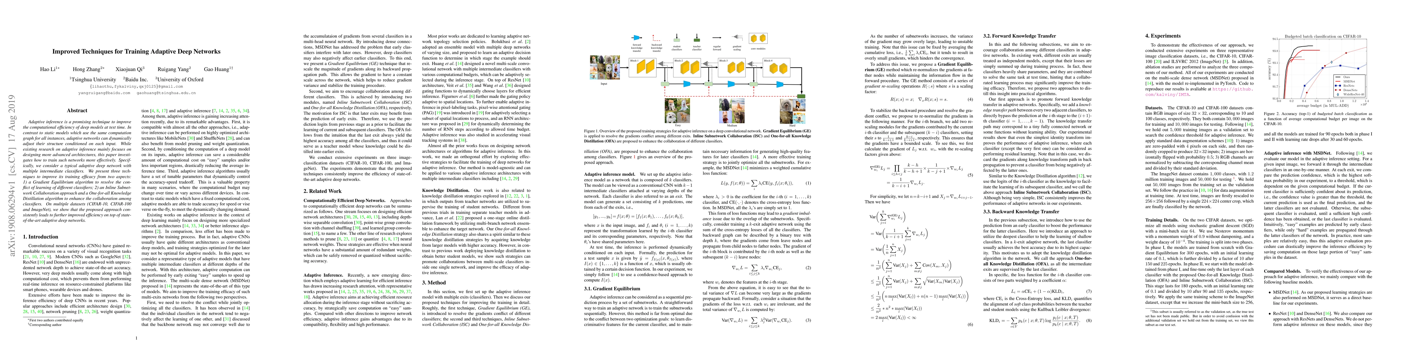 This paper proposes three techniques to enhance the training of adaptive deep networks, focusing on resolving classifier conflicts and improving classifier collaboration. The methods include a Gradient Equilibrium algorithm, an Inline Subnetwork Collaboration approach, and a One-for-all Knowledge Distillation algorithm. The results demonstrate consistent efficiency improvements over state-of-the-art adaptive networks on CIFAR-10, CIFAR-100, and ImageNet datasets.