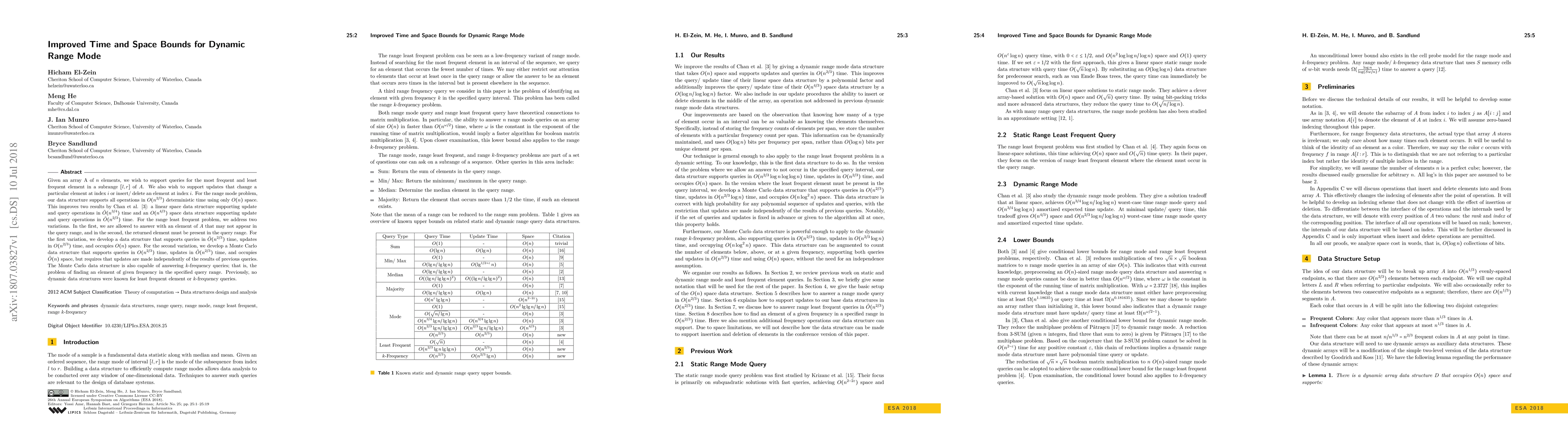 Researchers developed data structures for dynamic range mode and least frequent element problems, achieving improved time and space bounds, with applications in efficient querying and updating of large datasets.