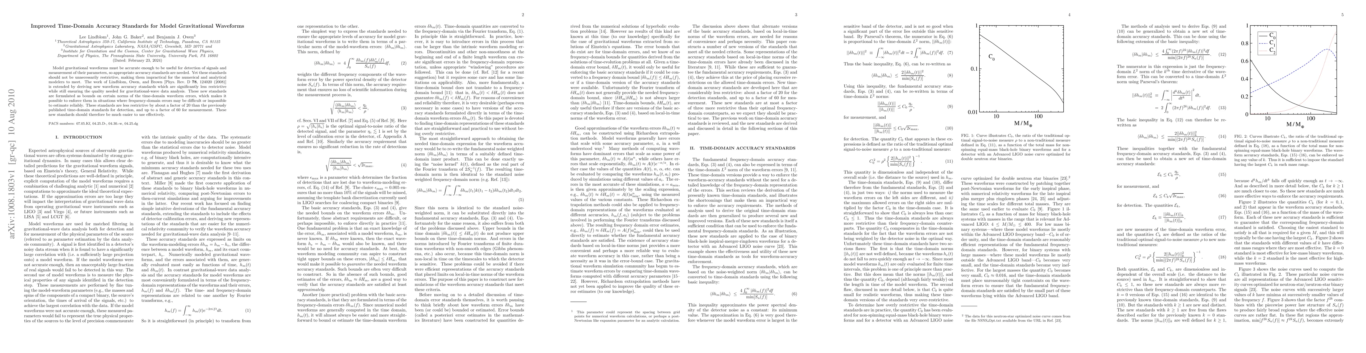 This paper extends previous work to develop less restrictive but still effective accuracy standards for model gravitational waveforms, formulated as bounds on time-domain waveform error norms, which are easier to enforce than frequency-domain standards and are up to 60 times less restrictive than prior time-domain standards.