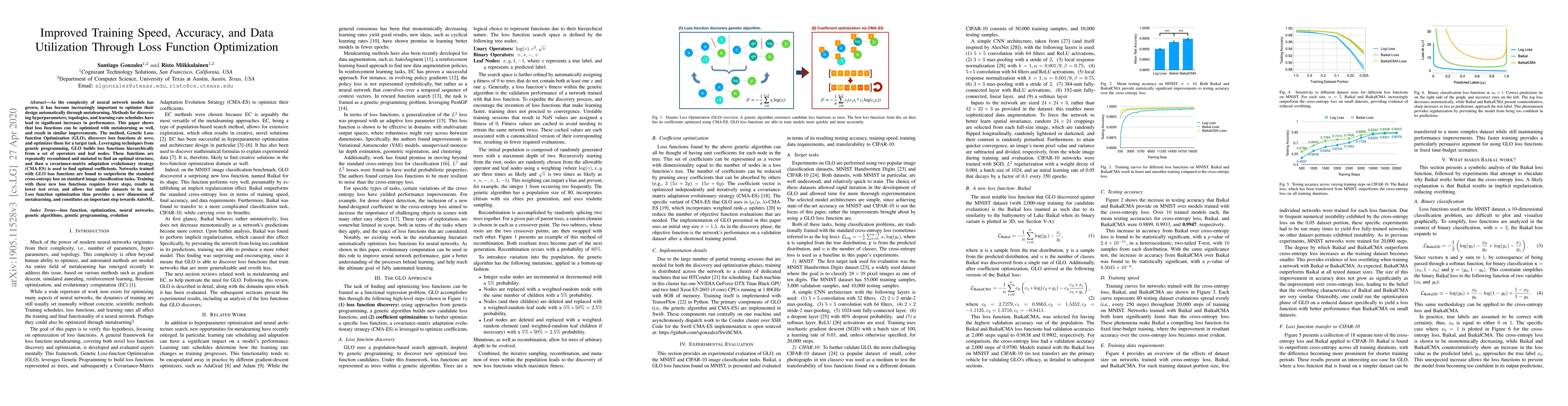 This paper introduces Genetic Loss-function Optimization (GLO), a metalearning method that optimizes loss functions for specific tasks, leading to improved training speed, accuracy, and data utilization. GLO outperforms standard cross-entropy loss in image classification, requiring fewer steps and smaller datasets.