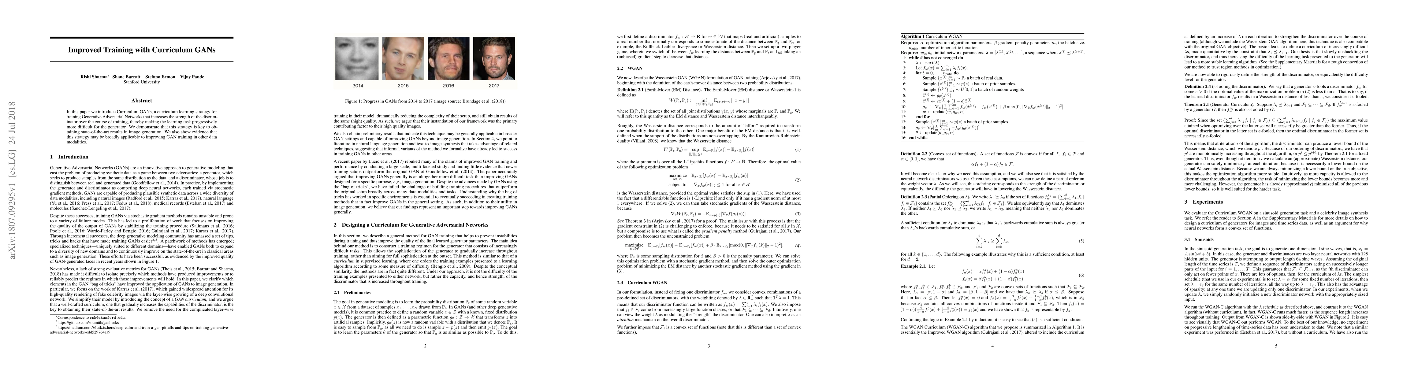 In this paper we introduce Curriculum GANs, a curriculum learning strategy for training Generative Adversarial Networks that increases the strength of the discriminator over the course of training, thereby making the learning task progressively more difficult for the generator. We demonstrate that this strategy is key to obtaining state-of-the-art results in image generation. We also show evidence that this strategy may be broadly applicable to improving GAN training in other data modalities.