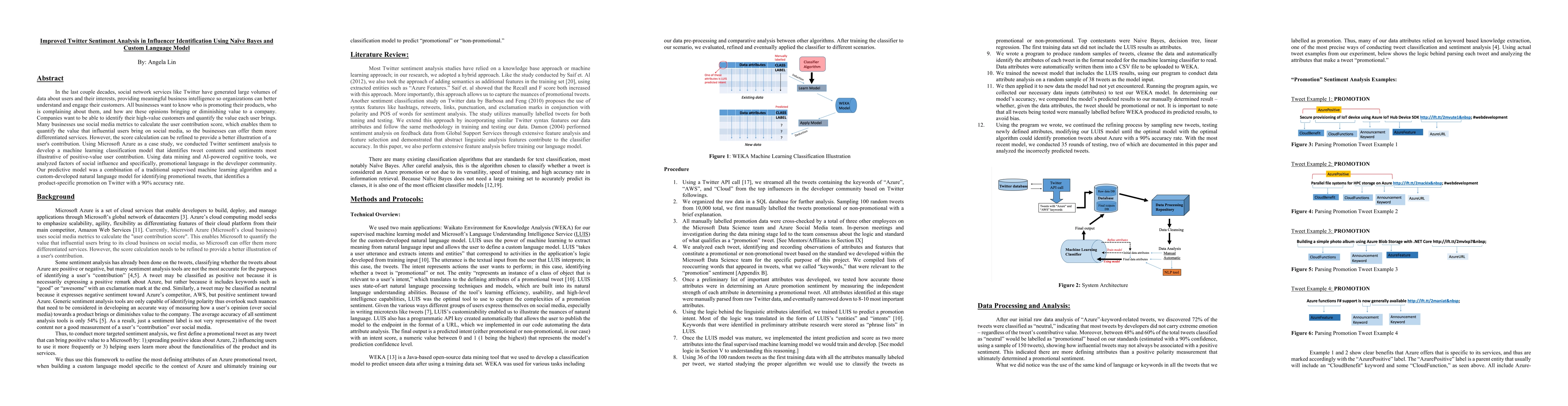 In the last couple decades, social network services like Twitter have generated large volumes of data about users and their interests, providing meaningful business intelligence so organizations can better understand and engage their customers. All businesses want to know who is promoting their products, who is complaining about them, and how are these opinions bringing or diminishing value to a company. Companies want to be able to identify their high-value customers and quantify the value each user brings. Many businesses use social media metrics to calculate the user contribution score, which enables them to quantify the value that influential users bring on social media, so the businesses can offer them more differentiated services. However, the score calculation can be refined to provide a better illustration of a user's contribution. Using Microsoft Azure as a case study, we conducted Twitter sentiment analysis to develop a machine learning classification model that identifies tweet contents and sentiments most illustrative of positive-value user contribution. Using data mining and AI-powered cognitive tools, we analyzed factors of social influence and specifically, promotional language in the developer community. Our predictive model was a combination of a traditional supervised machine learning algorithm and a custom-developed natural language model for identifying promotional tweets, that identifies a product-specific promotion on Twitter with a 90% accuracy rate.