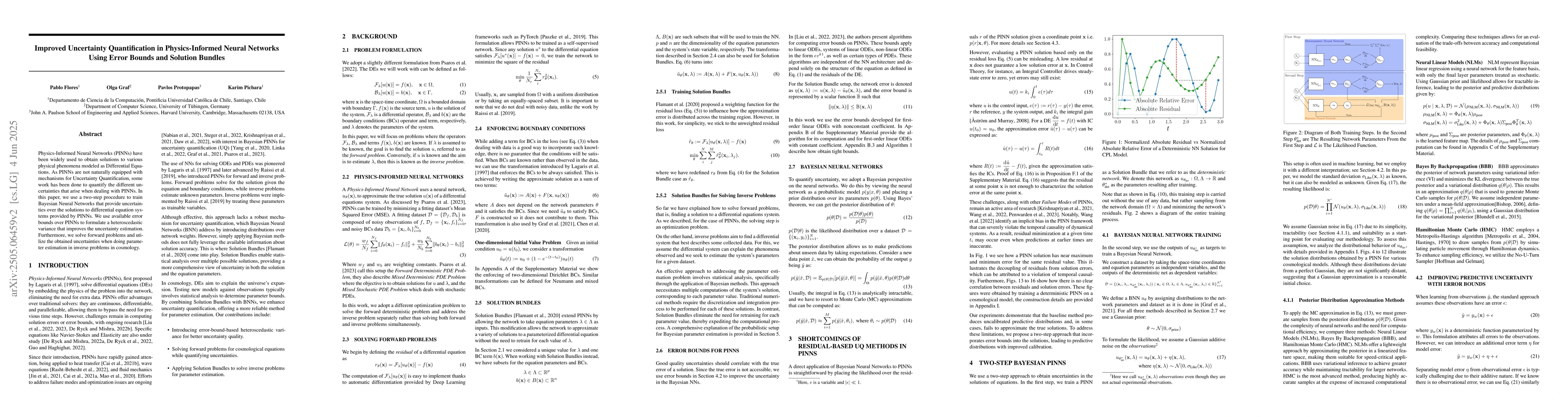 This research is important as it addresses the lack of uncertainty quantification mechanisms in PINNs, which are widely used for solving physical phenomena modeled as differential equations. The enhanced uncertainty estimation can benefit both forward and inverse problems, particularly in cosmology.