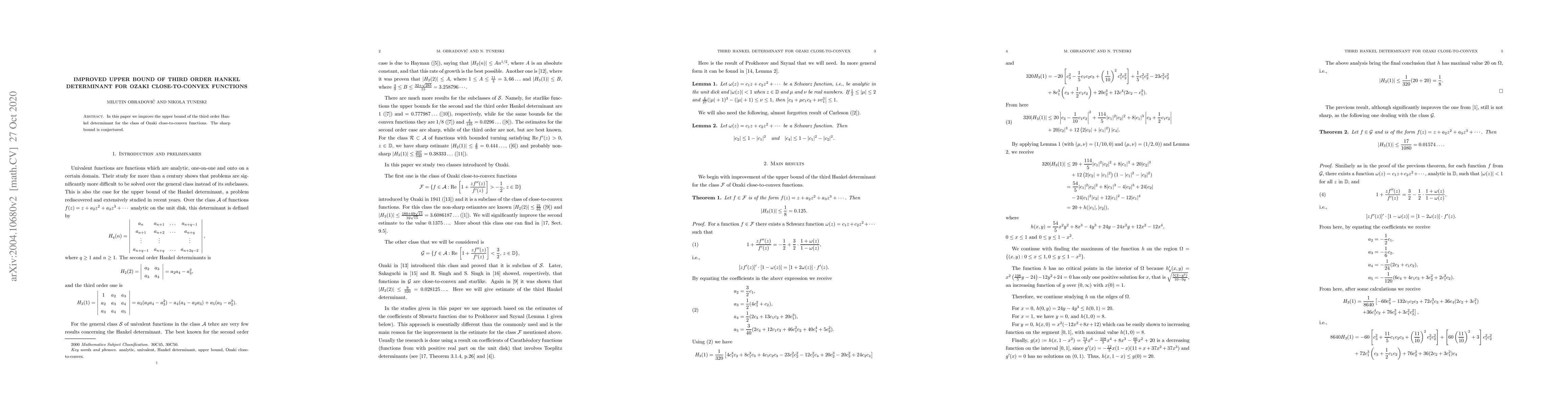 Summary: This paper enhances the upper limit of the third order Hankel determinant for Ozaki close-to-convex functions, proposing a conjectured sharp bound. The improvement aims to refine existing mathematical understanding in this specific class of functions.