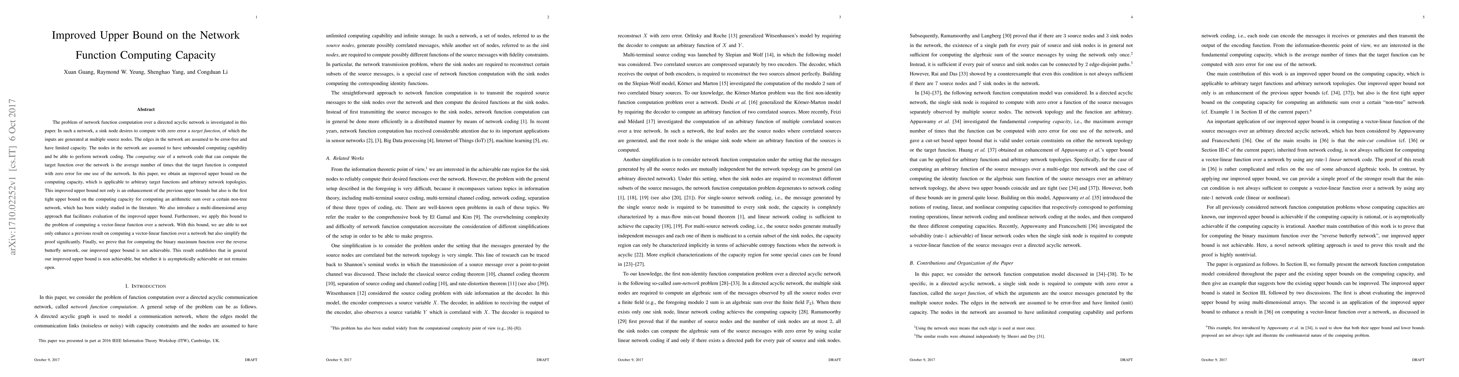 This paper presents an improved upper bound on the network function computing capacity for directed acyclic networks, applicable to any target function and topology. The new bound simplifies proofs for computing vector-linear functions and establishes non-achievability for the binary maximum function over the reverse butterfly network.