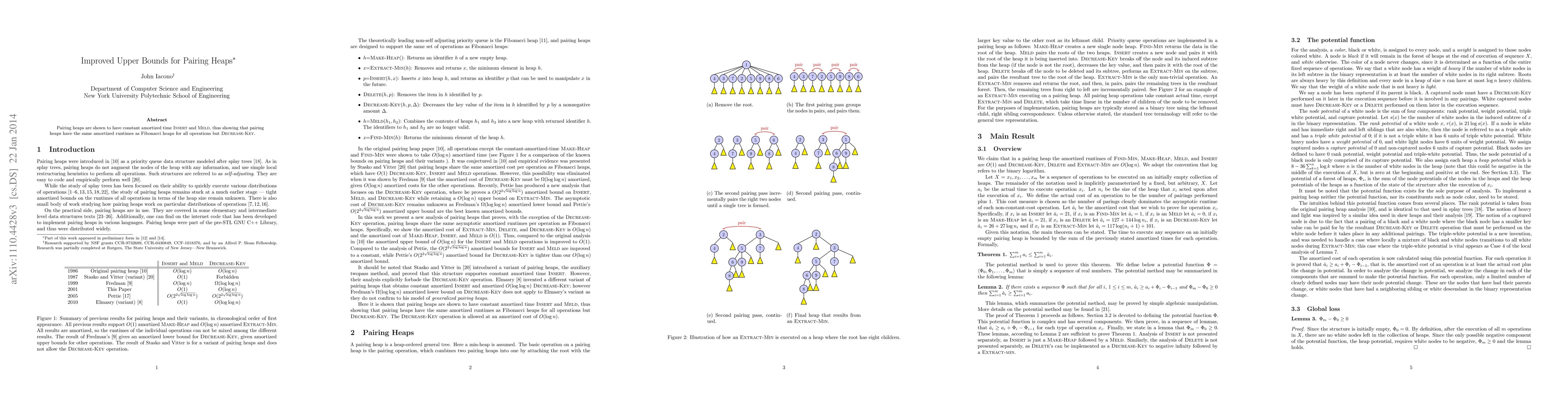 Pairing heaps achieve constant amortized time for Insert and Meld operations, matching Fibonacci heaps' efficiency for most operations except Decrease-key. This establishes improved upper bounds for pairing heaps' performance.