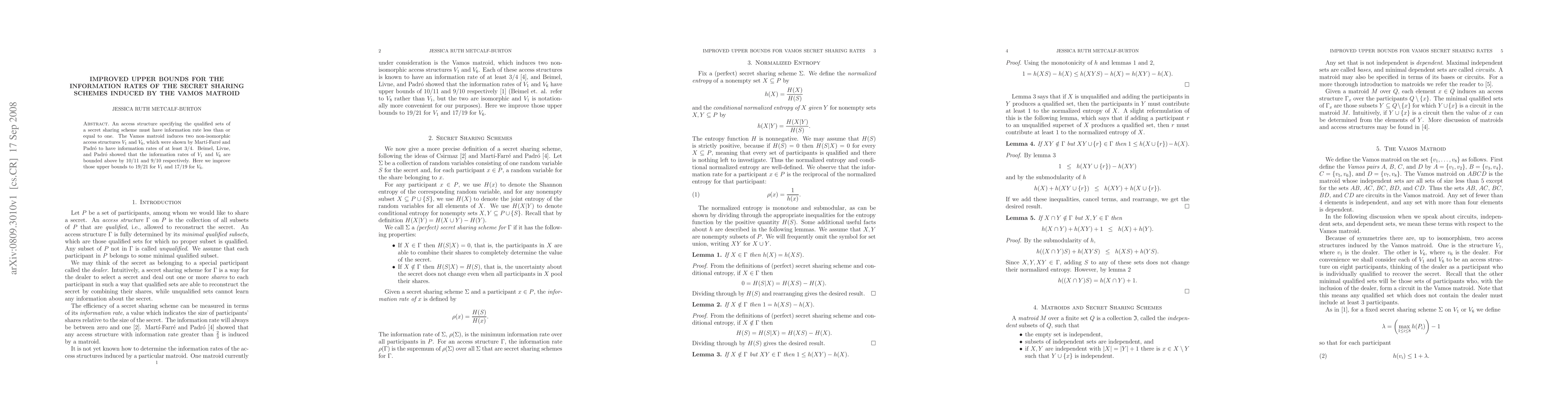 An access structure specifying the qualified sets of a secret sharing scheme must have information rate less than or equal to one. The Vamos matroid induces two non-isomorphic access structures V1 and V6, which were shown by Marti-Farre and Padro to have information rates of at least 3/4. Beimel, Livne, and Padro showed that the information rates of V1 and V6 are bounded above by 10/11 and 9/10 respectively. Here we improve those upper bounds to 19/21 for V1 and 17/19 for V6.