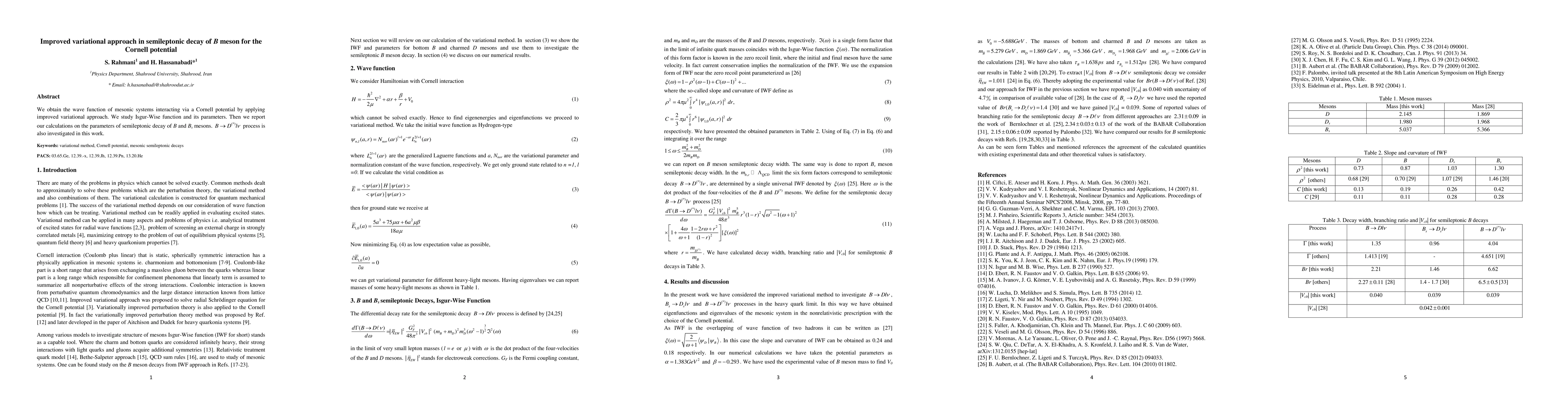 Researchers applied an improved variational approach to study semileptonic decay of B mesons using the Cornell potential, focusing on Isgur-Wise function parameters and calculating relevant decay rates.