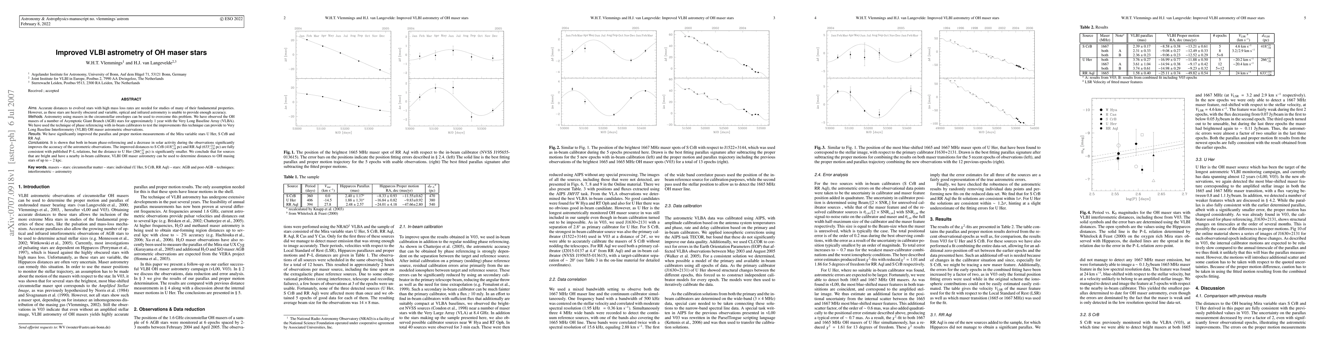 This study improves VLBI astrometry of OH maser stars using phase referencing with in-beam calibrators, significantly enhancing the accuracy of parallax and proper motion for Mira variables like U Her, S CrB, and RR Aql. The results demonstrate that this method can determine distances to OH masing stars up to ~2 kpc.