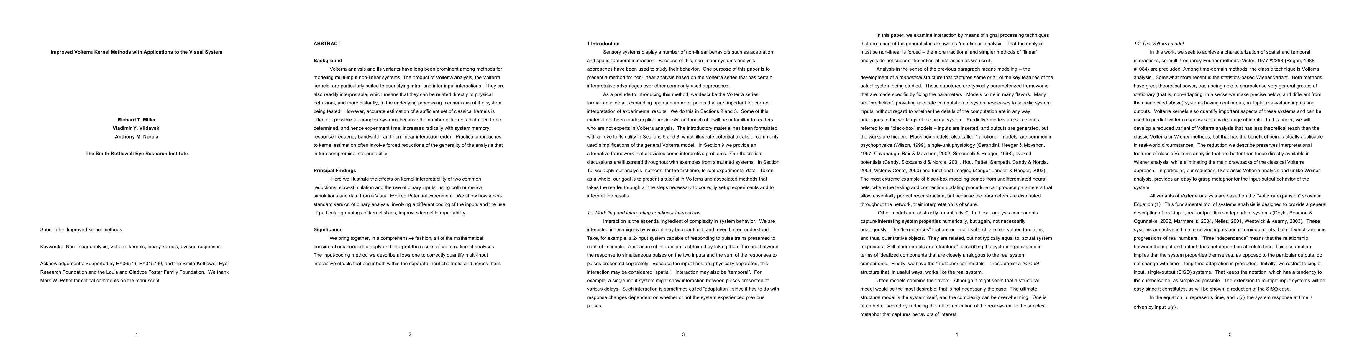 Volterra analysis and its variants have long been prominent among methods for modeling multi-input non-linear systems. The product of Volterra analysis, the Volterra kernels, are particularly suited to quantifying intra- and inter-input interactions. They are also readily interpretable, which means that they can be related directly to physical behaviors, and more distantly, to the underlying processing mechanisms of the system being tested. However, accurate estimation of a sufficient set of classical kernels is often not possible for complex systems because the number of kernels that need to be determined, and hence experiment time, increases radically with system memory, response frequency bandwidth, and non-linear interaction order. Practical approaches to kernel estimation often involve forced reductions of the generality of the analysis that in turn compromise interpretability. Here we illustrate the effects on kernel interpretability of two common reductions, slow-stimulation and the use of binary inputs, using both numerical simulations and data from a Visual Evoked Potential experiment. We show how a non-standard version of binary analysis, involving a different coding of the inputs and the use of particular groupings of kernel slices, improves kernel interpretability. We bring together, in a comprehensive fashion, all of the mathematical considerations needed to apply and interpret the results of Volterra kernel analyses. The input-coding method we describe allows one to correctly quantify multi-input interactive effects that occur both within the separate input channels and across them.