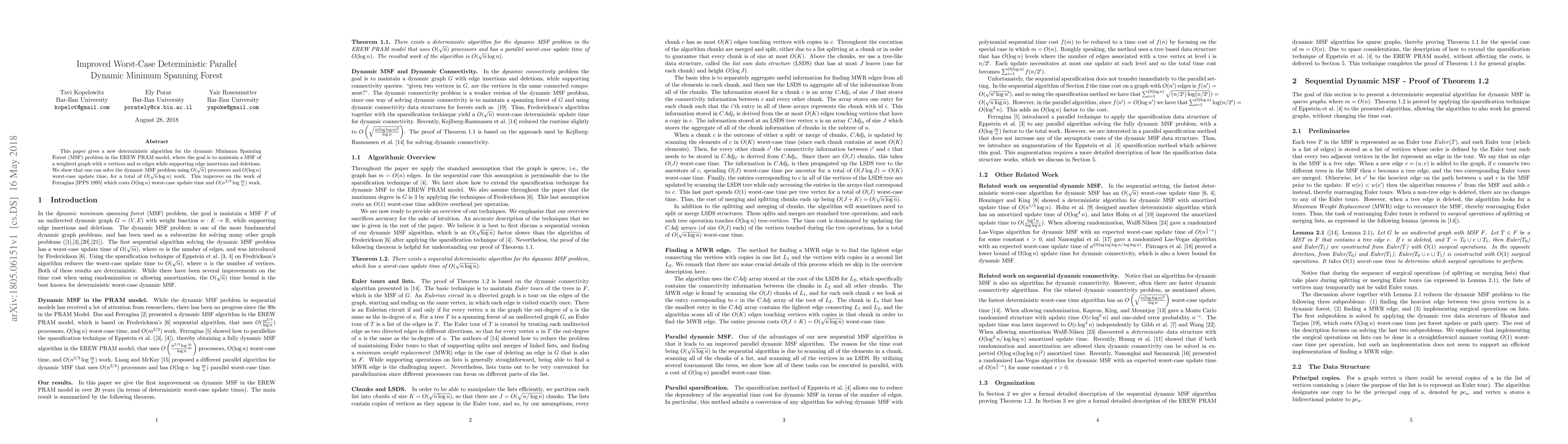 This paper presents a novel deterministic algorithm for the dynamic Minimum Spanning Forest problem on a parallel EREW PRAM model, achieving $O(\sqrt{n})$ processors and $O(\log n)$ worst-case update time for a total work of $O(\sqrt{n} \log n)$, improving upon Ferragina's $O(\log n)$ update time and $O(n^{2/3} \log{\frac{m}{n}})$ work.