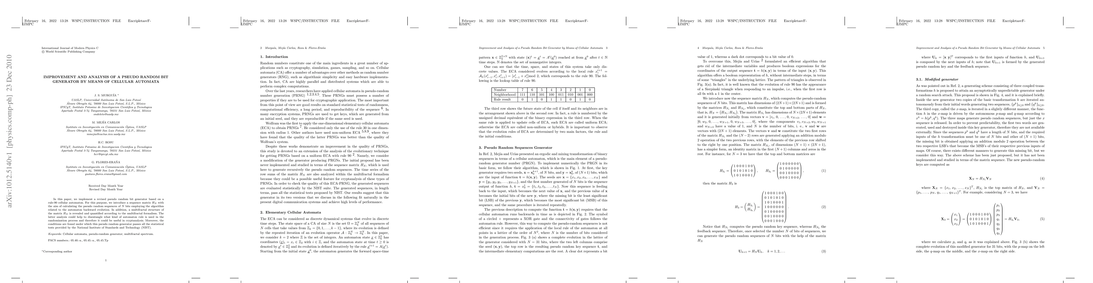 This paper presents a refined pseudo random bit generator using a rule-90 cellular automaton, employing a matrix H_N for sequence calculation via backward evolution. The study also analyzes the multifractal structure of H_N, which aids in identifying the automaton rule and may assist in cryptanalysis, while ensuring the generator meets NIST statistical tests.