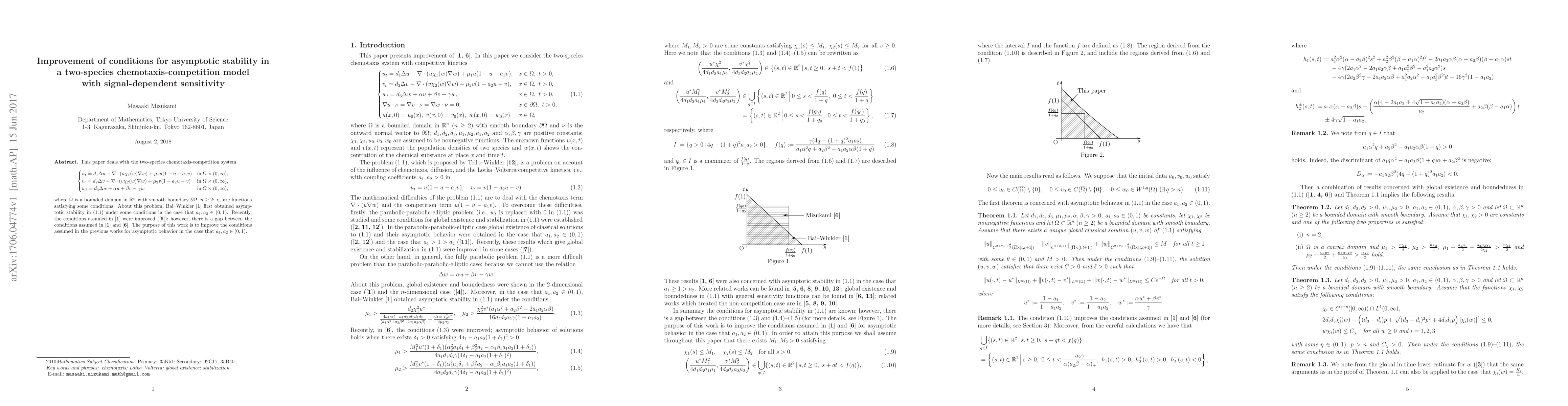 This paper refines the conditions for asymptotic stability in a two-species chemotaxis-competition model with signal-dependent sensitivity, addressing gaps in previous works by Bai--Winkler to enhance the model's robustness.