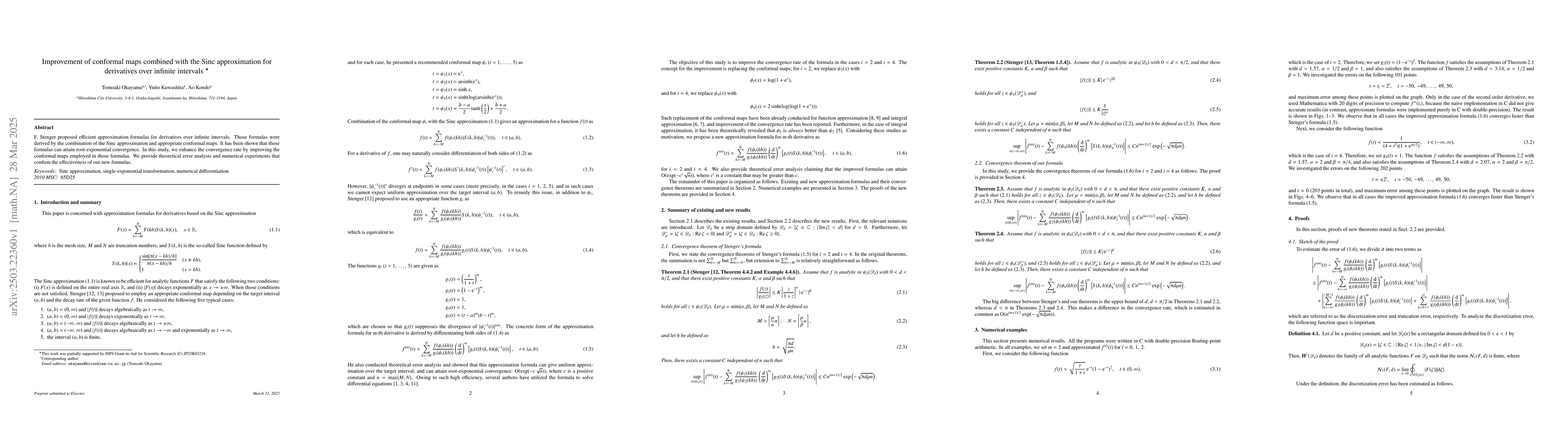 The paper presents enhanced conformal maps and improved error bounds for Sinc approximation of derivatives over infinite intervals, achieving root-exponential convergence.
