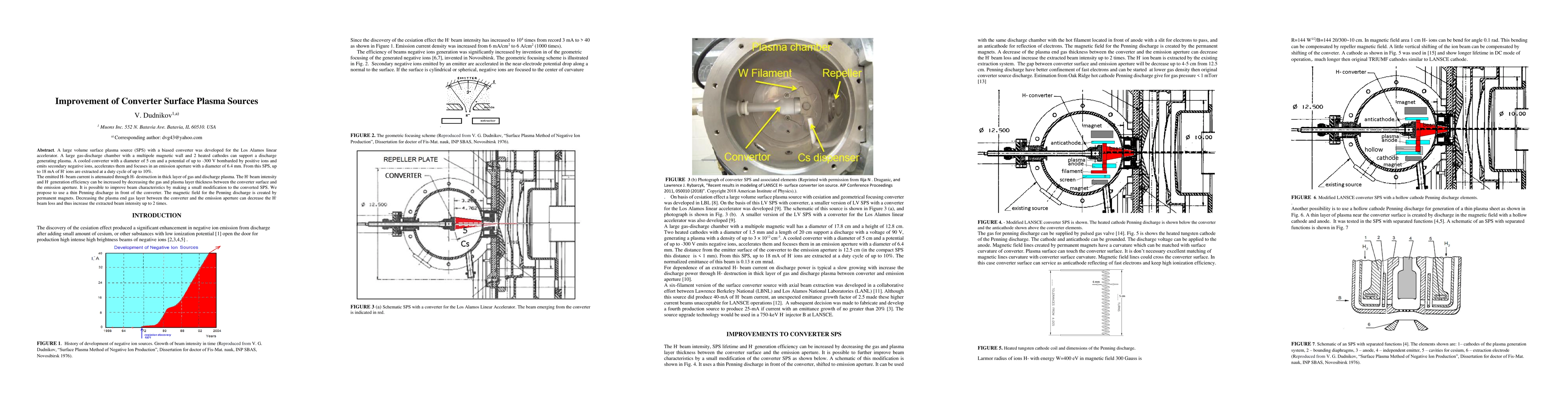 A large volume surface plasma source (SPS) with a biased converter was developed for the Los Alamos linear accelerator. A large gas-discharge chamber with a multipole magnetic wall and 2 heated cathodes can support a discharge generating plasma. A cooled converter with a diameter of 5 cm and a potential of up to -300 V bombarded by positive ions and emits secondary negative ions, accelerates them and focuses in an emission aperture with a diameter of 6.4 mm. From this SPS, up to 18 mA of H- ions are extracted at a duty cycle of up to 10%. The emitted H- beam current is attenuated through H- destruction in thick layer of gas and discharge plasma. The H- beam intensity and H- generation efficiency can be increased by decreasing the gas and plasma layer thickness between the converter surface and the emission aperture. It is possible to improve beam characteristics by making a small modification to the converted SPS. We propose to use a thin Penning discharge in front of the converter. The magnetic field for the Penning discharge is created by permanent magnets. Decreasing the plasma end gas layer between the converter and the emission aperture can decrease the H- beam loss and thus increase the extracted beam intensity up to 2 times