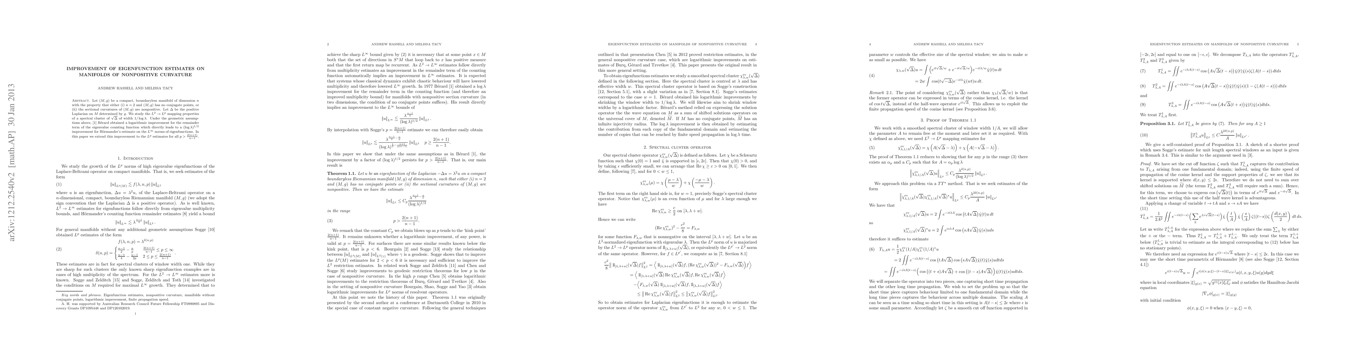This paper extends Bélard's logarithmic improvement for the eigenvalue counting function to $L^p$ estimates of eigenfunctions on compact, nonpositively curved manifolds, achieving a $(\log\lambda)^{1/2}$ enhancement for $L^{\infty}$ norms and extending this improvement to $L^p$ norms for $p>\frac{2(n+1)}{n-1}$.