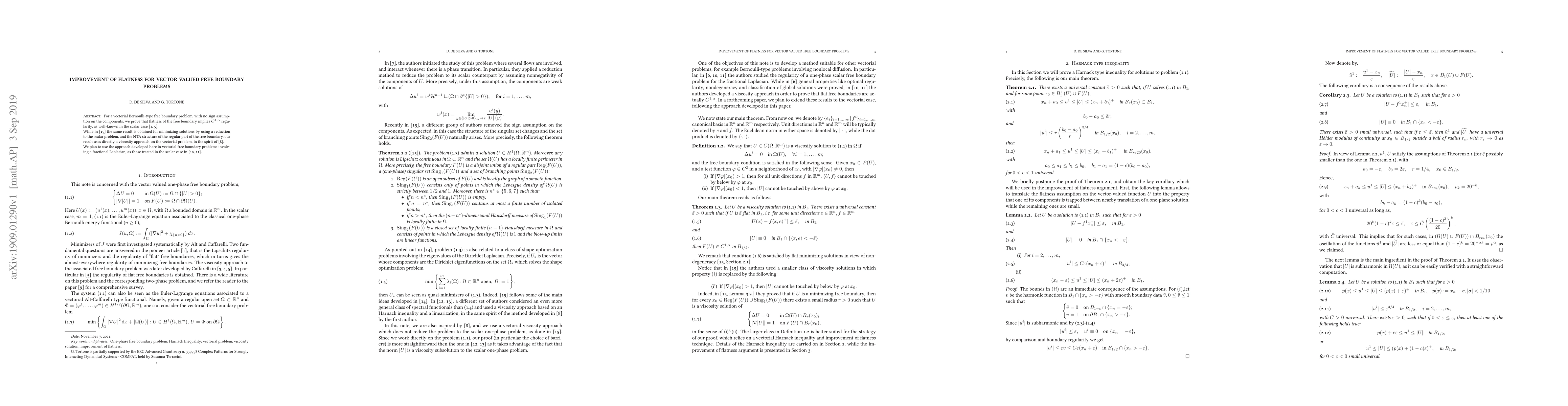 For a vectorial Bernoulli-type free boundary problem, with no sign assumption on the components, we prove that flatness of the free boundary implies $C^{1,\alpha}$ regularity, as well-known in the scalar case \cite{AC,C2}. While in \cite{MTV2} the same result is obtained for minimizing solutions by using a reduction to the scalar problem, and the NTA structure of the regular part of the free boundary, our result uses directly a viscosity approach on the vectorial problem, in the spirit of \cite{D}. We plan to use the approach developed here in vectorial free boundary problems involving a fractional Laplacian, as those treated in the scalar case in \cite{DR, DSS}.