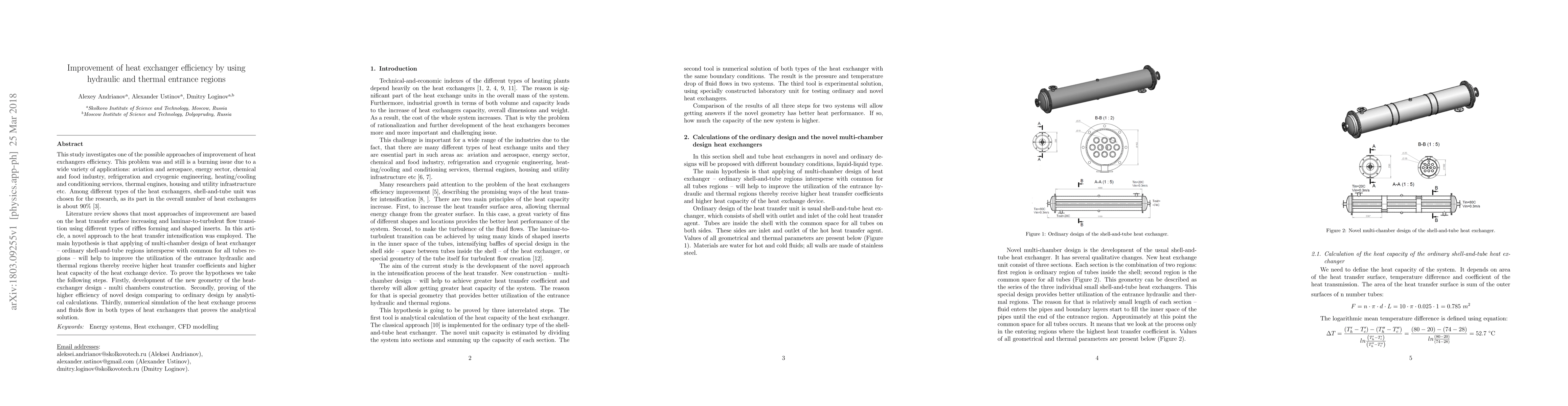 This study proposes a novel multi-chamber design for shell-and-tube heat exchangers to enhance efficiency by utilizing entrance hydraulic and thermal regions, supported by analytical calculations and numerical simulations. The results indicate higher heat transfer coefficients and improved heat capacity compared to conventional designs.