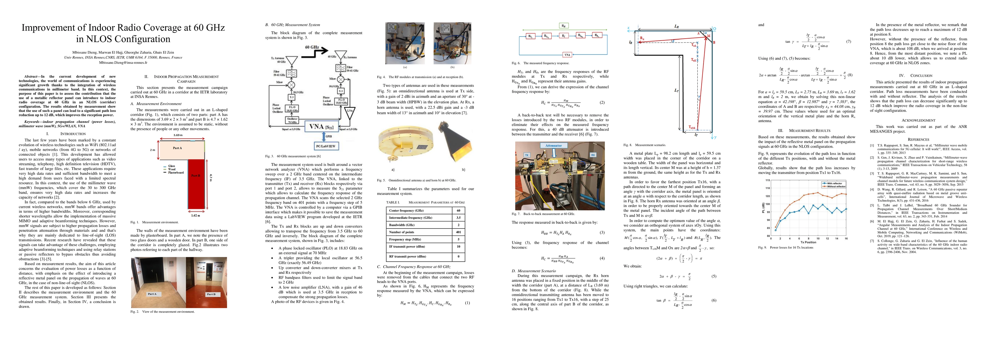 In the current development of new technologies, the world of communications is experiencing significant growth thanks to the integration of wireless communications in millimeter band. In this context, the purpose of this paper is to assess the contribution that the use of a metallic reflector panel can introduce to indoor radio coverage at 60 GHz in an NLOS (corridor) configuration. The results obtained by measurement show that the use of such a panel can lead to a significant path loss reduction up to 12 dB, which improves the reception power.