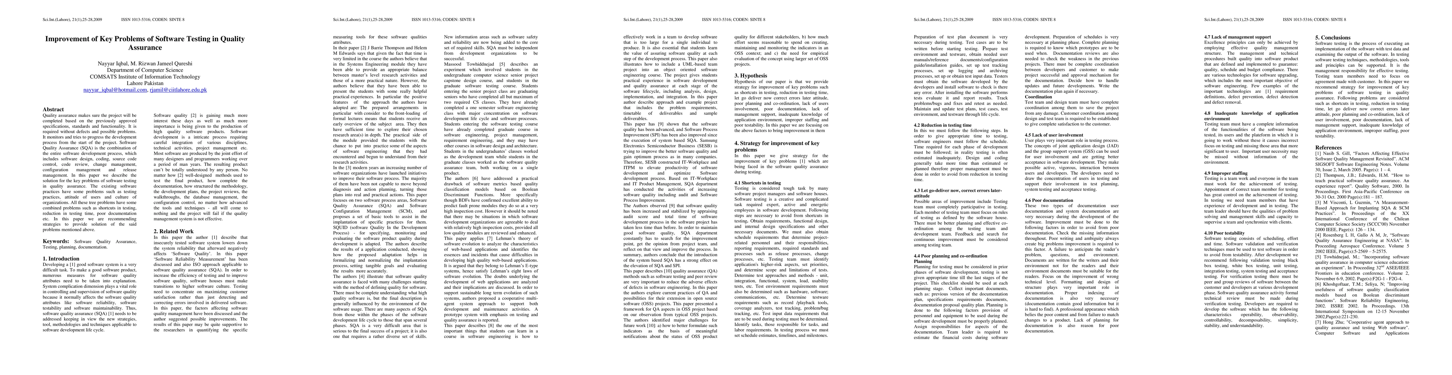 This paper addresses key issues in software testing within quality assurance, including testing practices, user attitudes, and organizational culture. It proposes strategies to tackle problems like shortcuts in testing, reduced testing time, and poor documentation.
