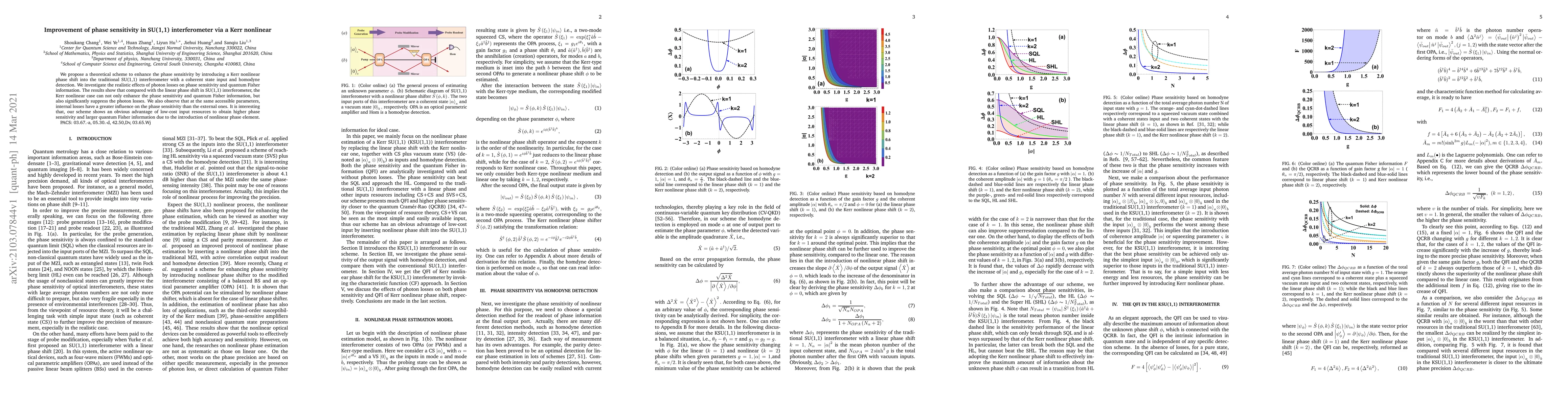 This paper proposes a theoretical scheme to enhance the phase sensitivity in an SU(1,1) interferometer using a Kerr nonlinear phase shift, showing improved sensitivity and reduced photon losses compared to linear phase shifts. The study highlights that the scheme is cost-effective due to lower input requirements while achieving higher phase sensitivity and quantum Fisher information.