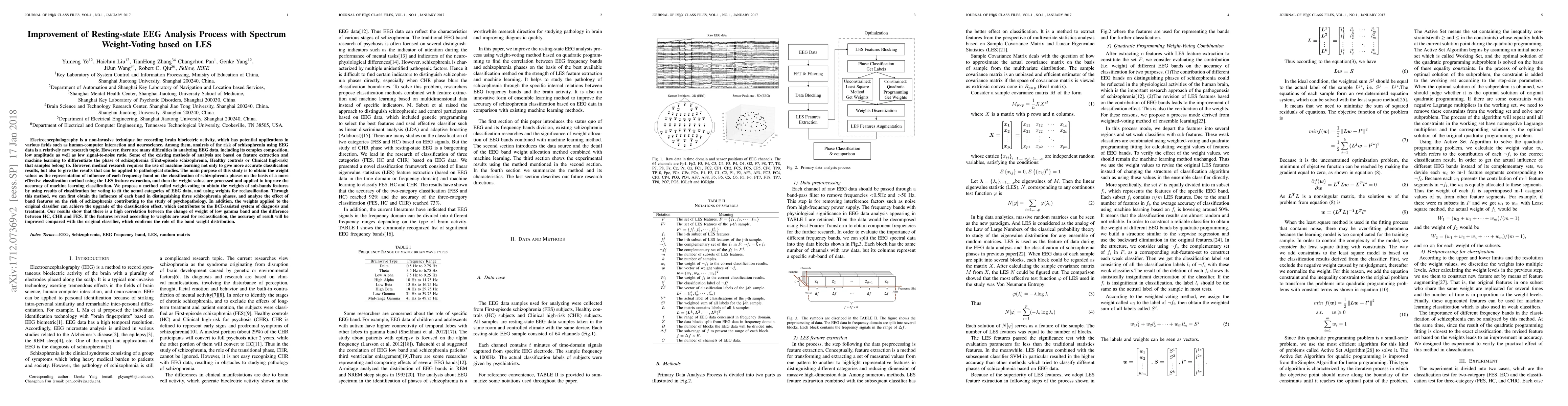 This paper proposes a spectrum weight-voting method based on LES for improving resting-state EEG analysis, aiming to enhance the accuracy of classifying schizophrenia phases. The method assigns weights to frequency bands, which are then used to reclassify EEG data, showing improved accuracy and highlighting the influence of low gamma band features on schizophrenia risk.