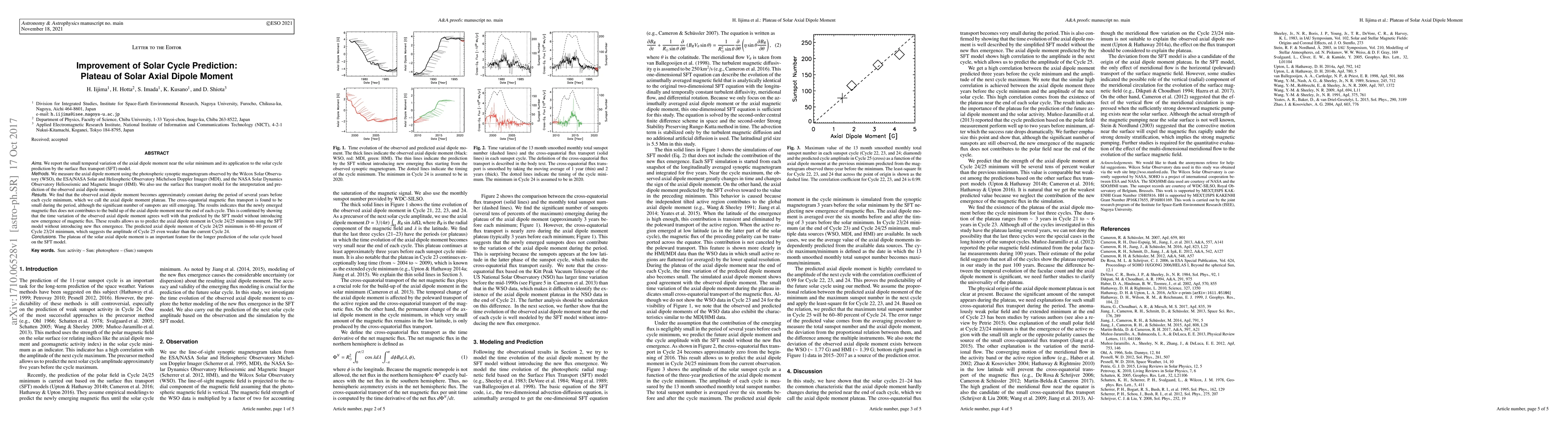 Aims. We report the small temporal variation of the axial dipole moment near the solar minimum and its application to the solar cycle prediction by the surface flux transport (SFT) model. Methods. We measure the axial dipole moment using the photospheric synoptic magnetogram observed by the Wilcox Solar Observatory (WSO), the ESA/NASA Solar and Heliospheric Observatory Michelson Doppler Imager (MDI), and the NASA Solar Dynamics Observatory Helioseismic and Magnetic Imager (HMI). We also use the surface flux transport model for the interpretation and prediction of the observed axial dipole moment. Results. We find that the observed axial dipole moment becomes approximately constant during the period of several years before each cycle minimum, which we call the axial dipole moment plateau. The cross-equatorial magnetic flux transport is found to be small during the period, although the significant number of sunspots are still emerging. The results indicates that the newly emerged magnetic flux does not contributes to the build up of the axial dipole moment near the end of each cycle. This is confirmed by showing that the time variation of the observed axial dipole moment agrees well with that predicted by the SFT model without introducing new emergence of magnetic flux. These results allows us to predict the axial dipole moment in Cycle 24/25 minimum using the SFT model without introducing new flux emergence. The predicted axial dipole moment of Cycle 24/25 minimum is 60--80 percent of Cycle 23/24 minimum, which suggests the amplitude of Cycle 25 even weaker than the current Cycle 24. Conclusions. The plateau of the solar axial dipole moment is an important feature for the longer prediction of the solar cycle based on the SFT model.